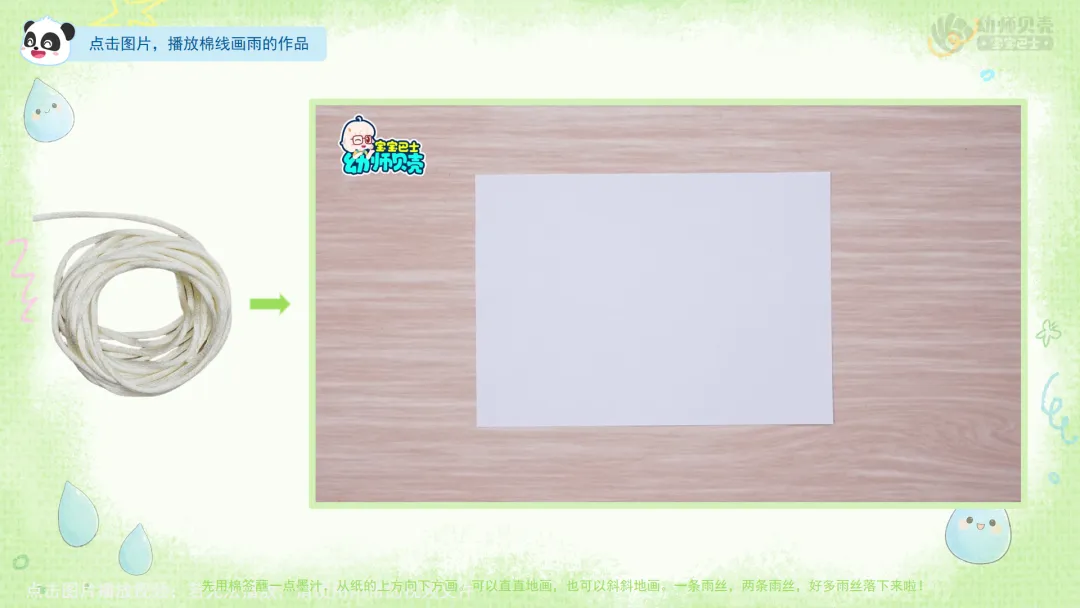 ——再请一个小朋友来试试,用棉线怎么画出雨点?