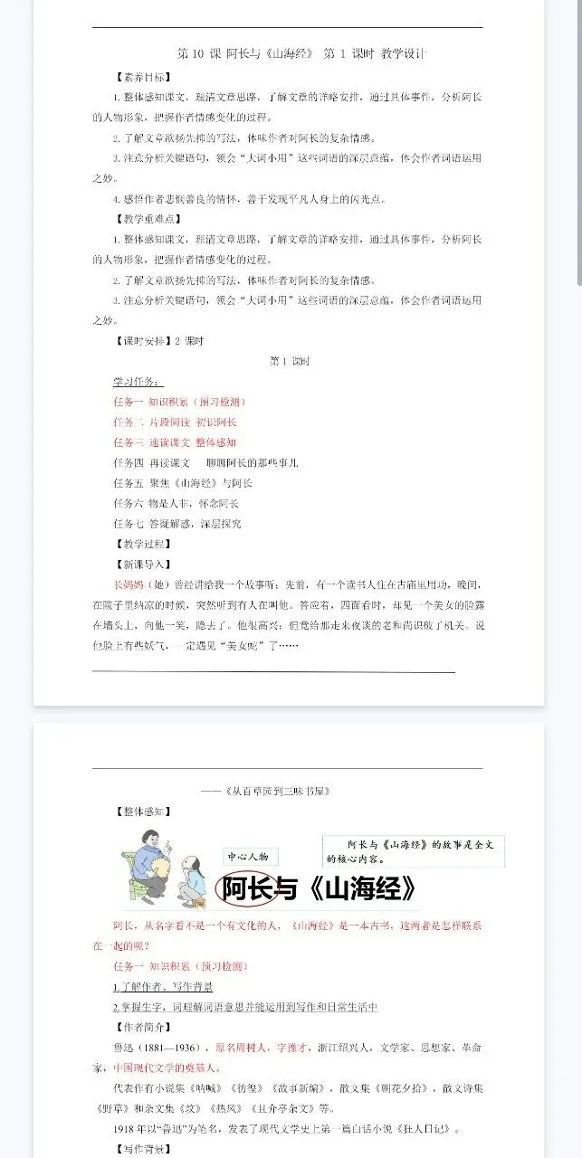 >七下阿长与山海经任务型(课件+教学设计+课前预习单)