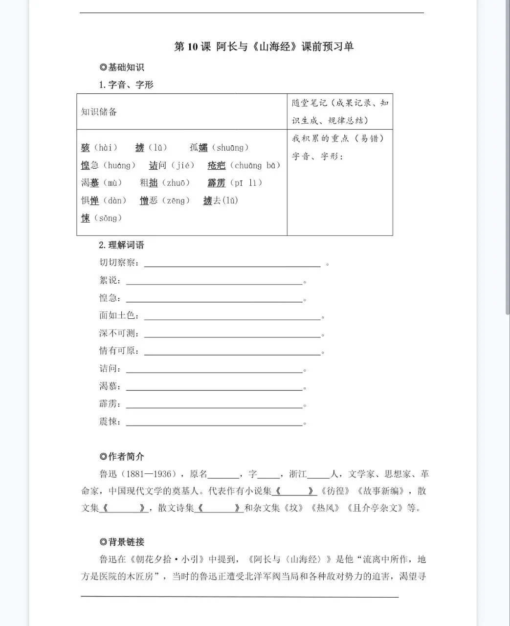 七下阿长与山海经任务型(课件+教学设计+课前预习单)