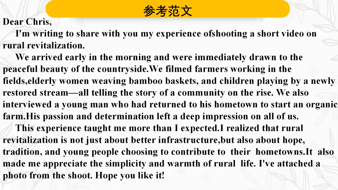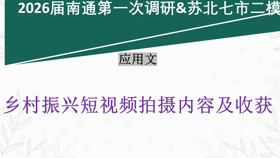 今日分享:2026届南通第一次调研&苏北七市二模 应用文 乡村振兴短视频拍摄内容及收获