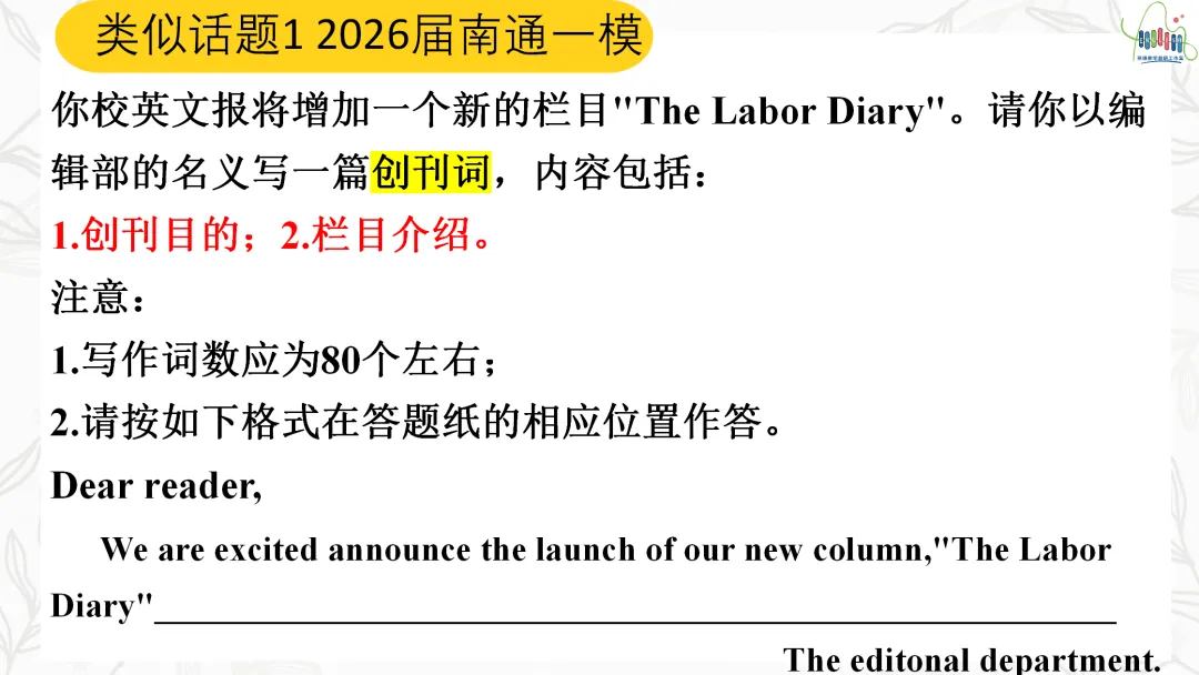 明日分享:2026届南通第一次调研&苏北七市二模 续写 详解课件