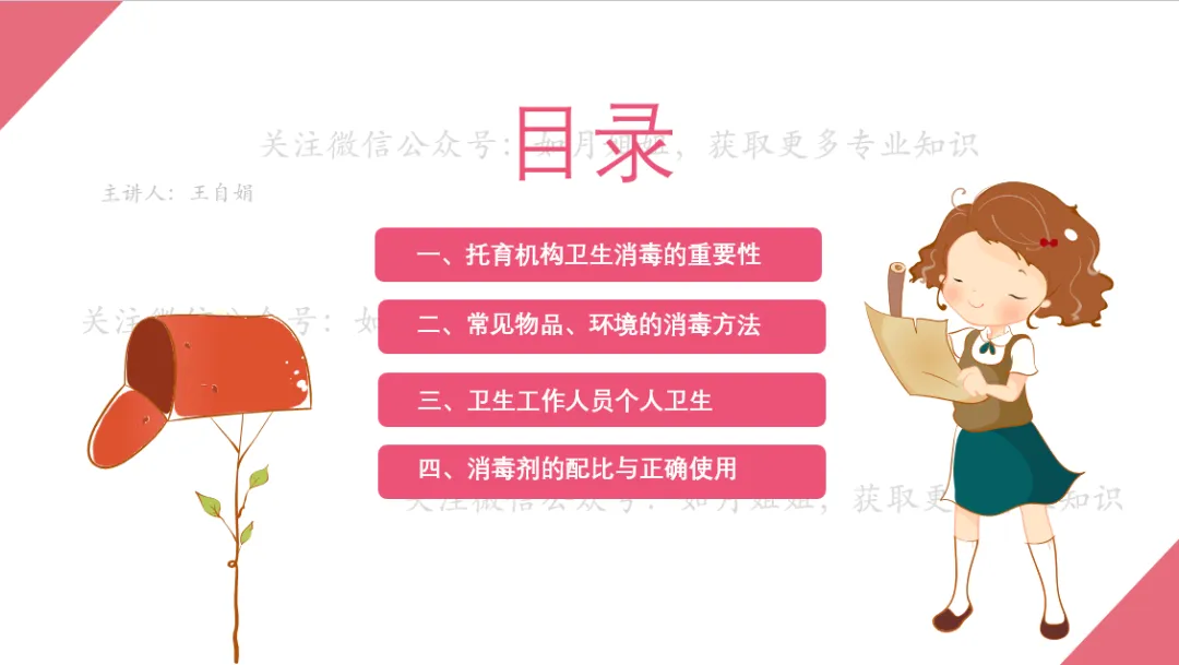 本人在基层妇幼保健机构深耕30余年,从事过儿科临床、儿童保健和辖区公共卫生等工作。当前很多托育机构非常需要托育方面的专业卫生保健知识,为此,我将陆续把自己多年工作经验和精心制作的PPT课件分享给大家。愿为托育、托幼工作尽一份微薄之力。欢迎您关注、转发、留言交流。