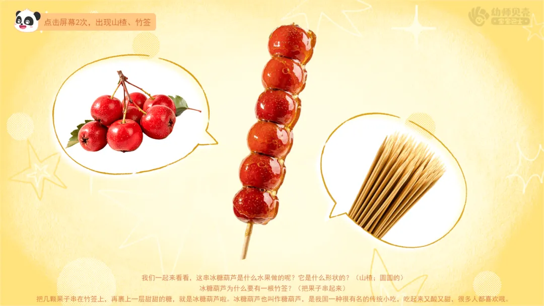 l课件准备:《冰糖葫芦》PPT。