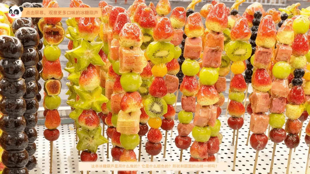 ——这么多不一样的冰糖葫芦,它们和刚才的山楂串有什么不一样呢?