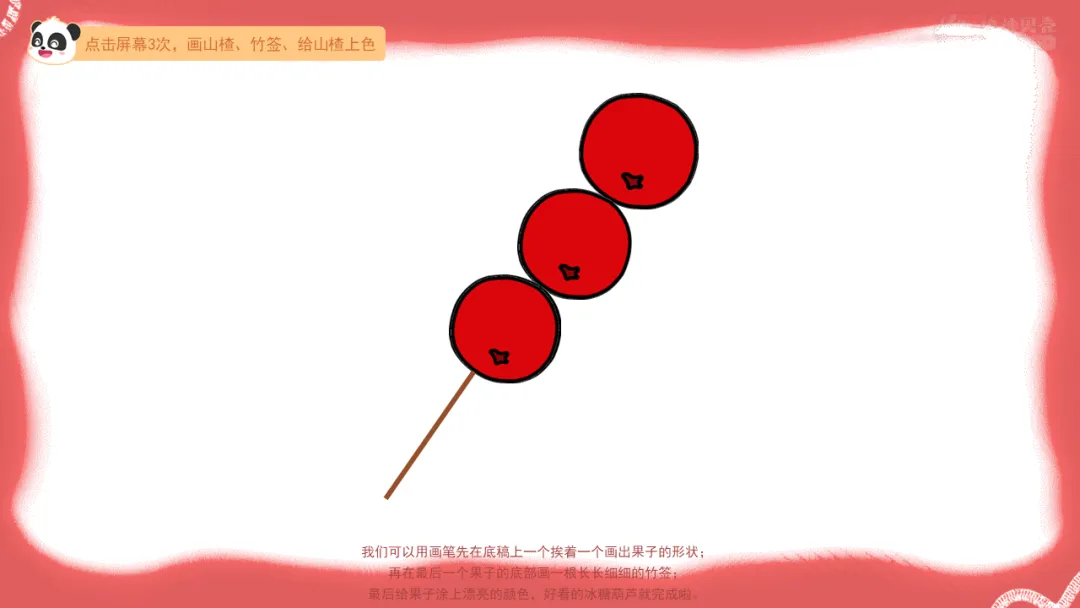 ——最后给果子涂上漂亮的颜色,好看的冰糖葫芦就完成啦。