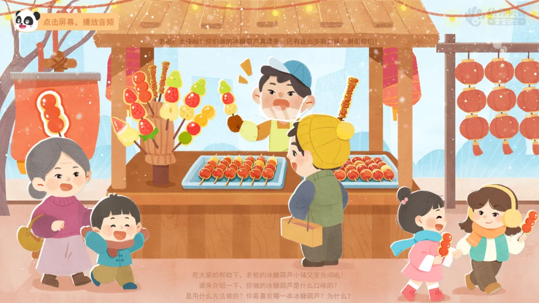 ——在大家的帮助下,老板的冰糖葫芦小铺又变热闹啦!