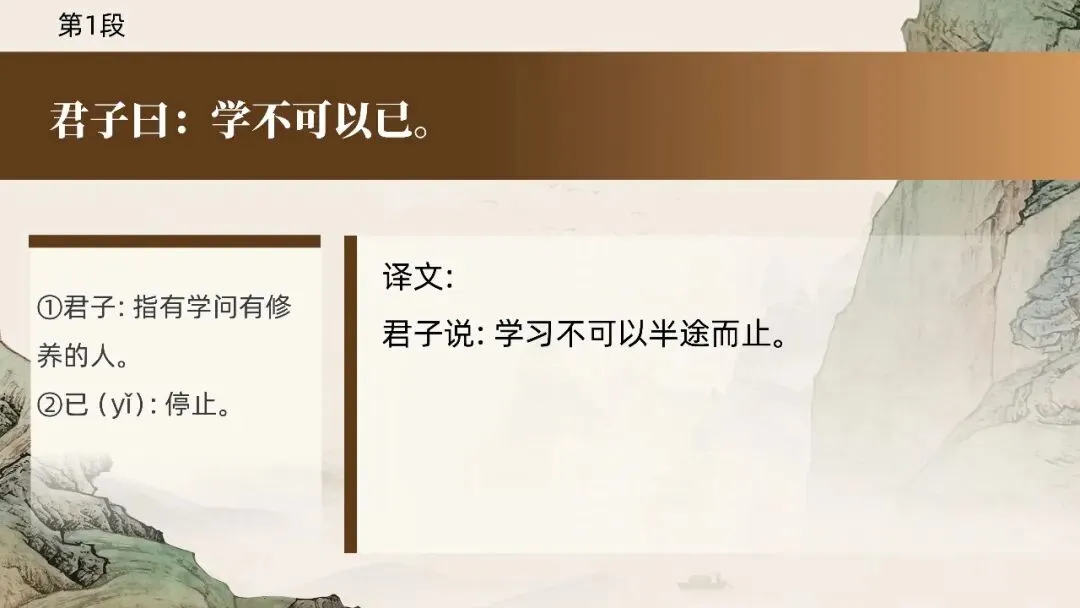 本期更新的课件为统编高教社版中职语文基础模块上册第六单元《劝学》,共49页。