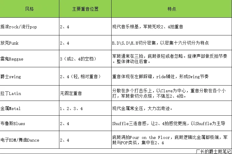比如练习二中的,保持2、4重音,其他填充让手自己去跑。就是这个道理。