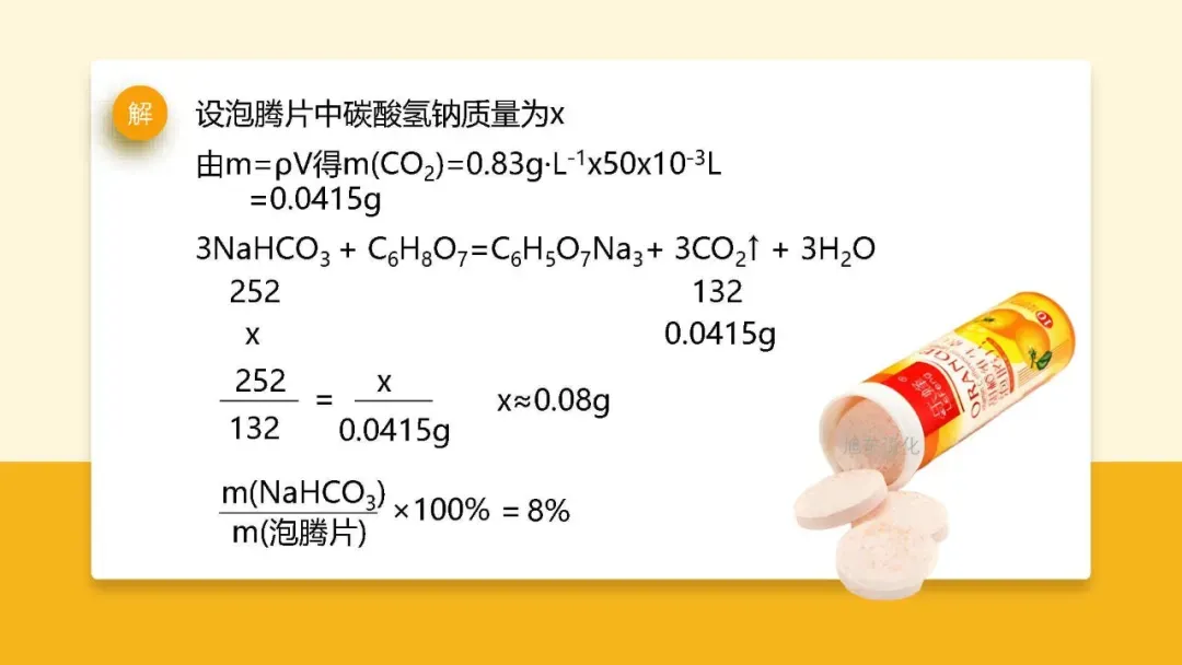 提供反应化学方程式:3NaHCO₃ + C₆H₈O₇ = C₆H₅O₇Na₃ + 3X↑ + 3H₂O,引导学生运用质量守恒定律推测 X 的化学式。