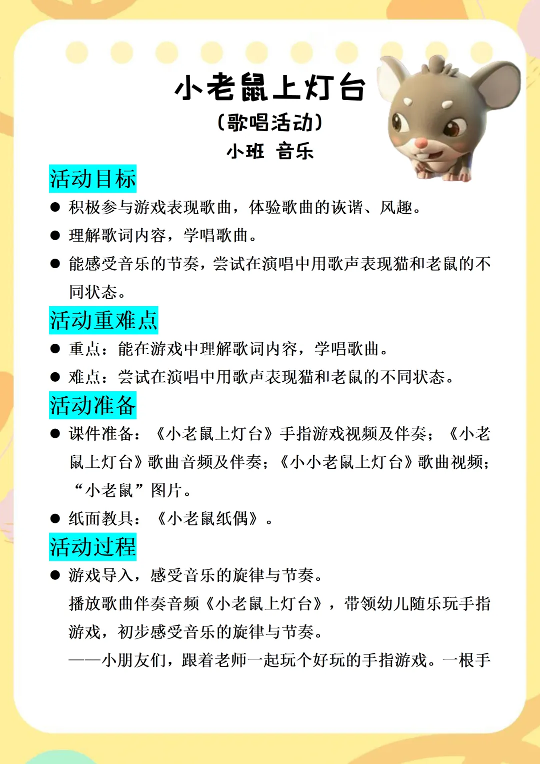 能感受音乐的节奏,尝试在演唱中用歌声表现猫和老鼠的不同状态。