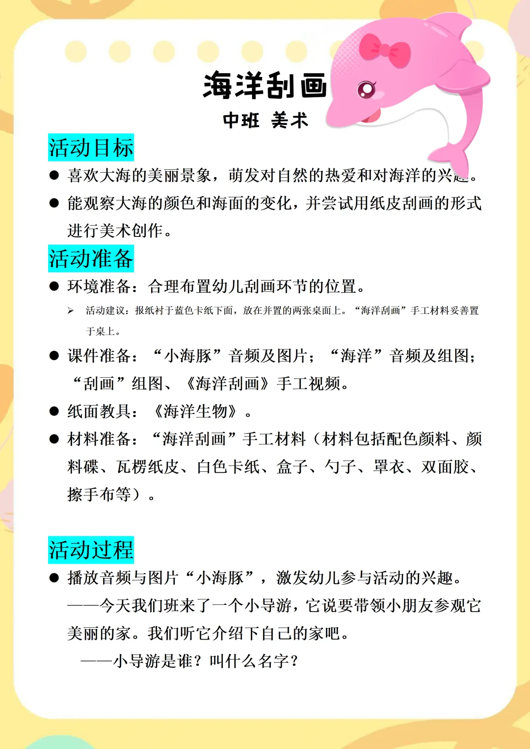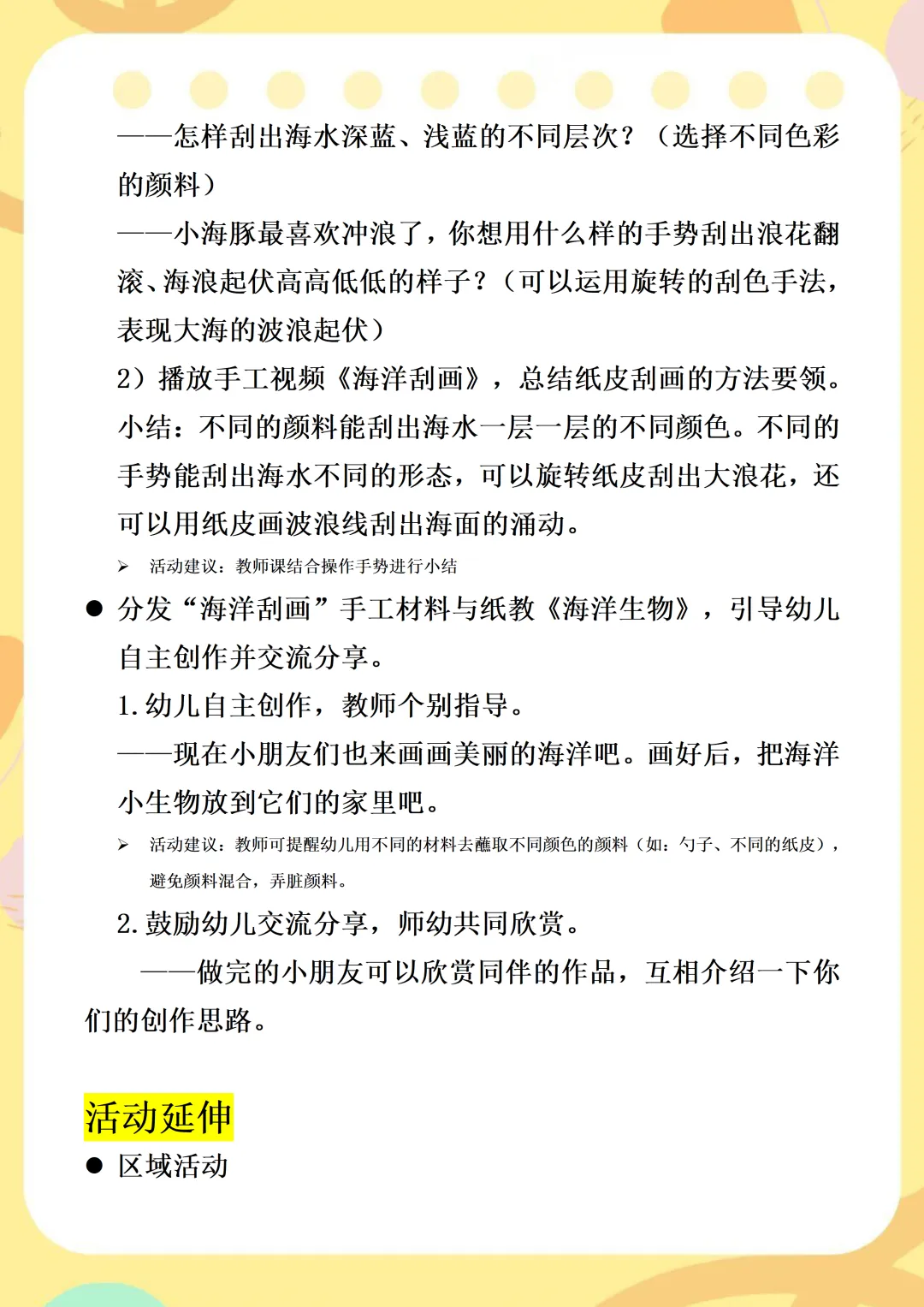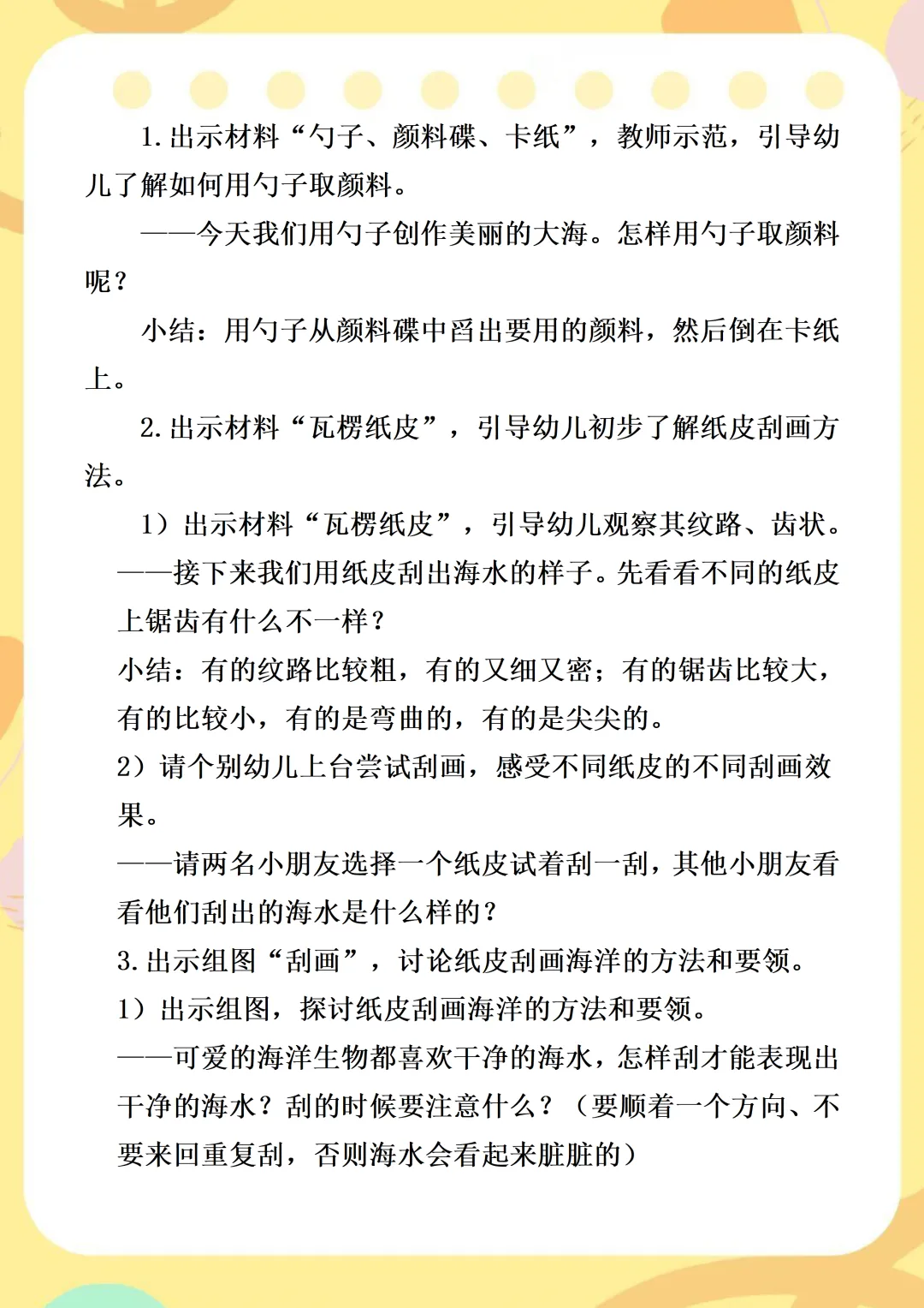 能观察大海的颜色和海面的变化,并尝试用纸皮刮画的形式进行美术创作。