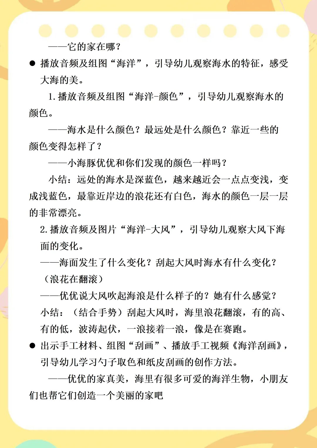 活动目标:喜欢大海的美丽景象,萌发对自然的热爱和对海洋的兴趣。