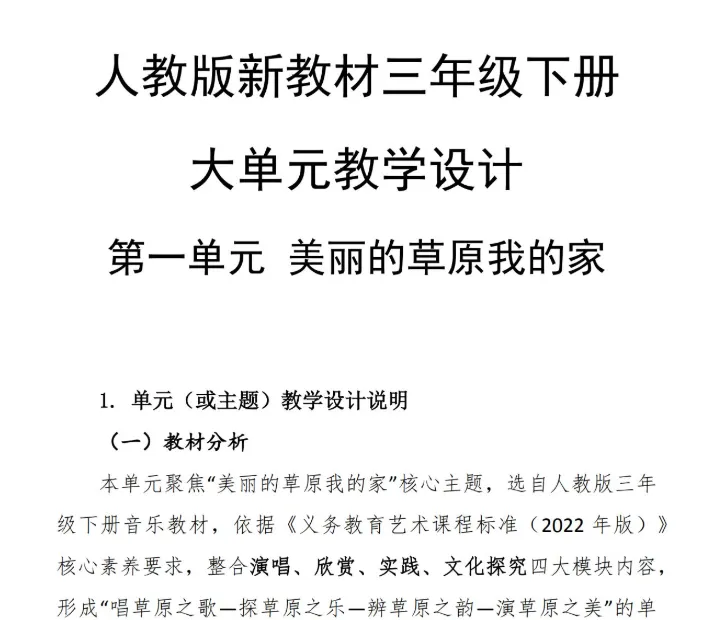 2026新版人音版三年级音乐下册全册表格教案+教学计划【可下载打印】