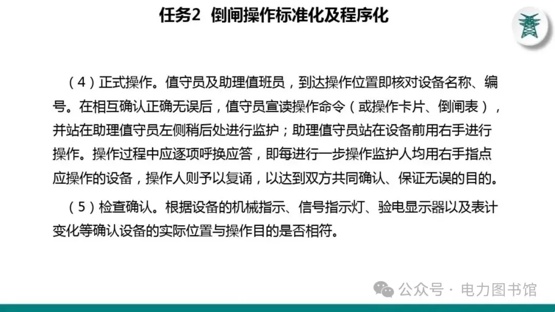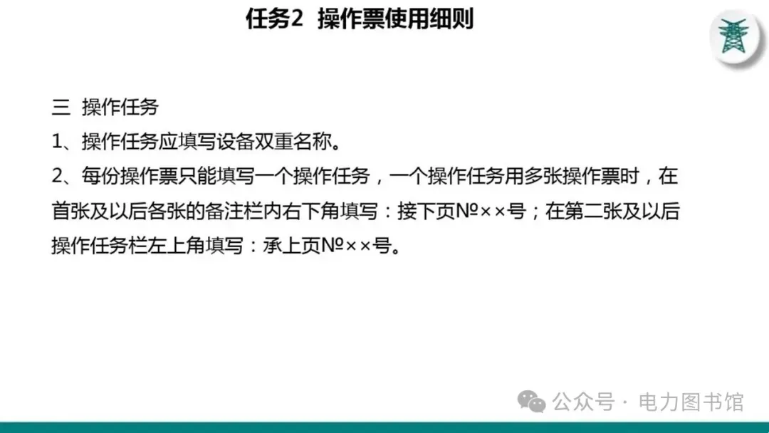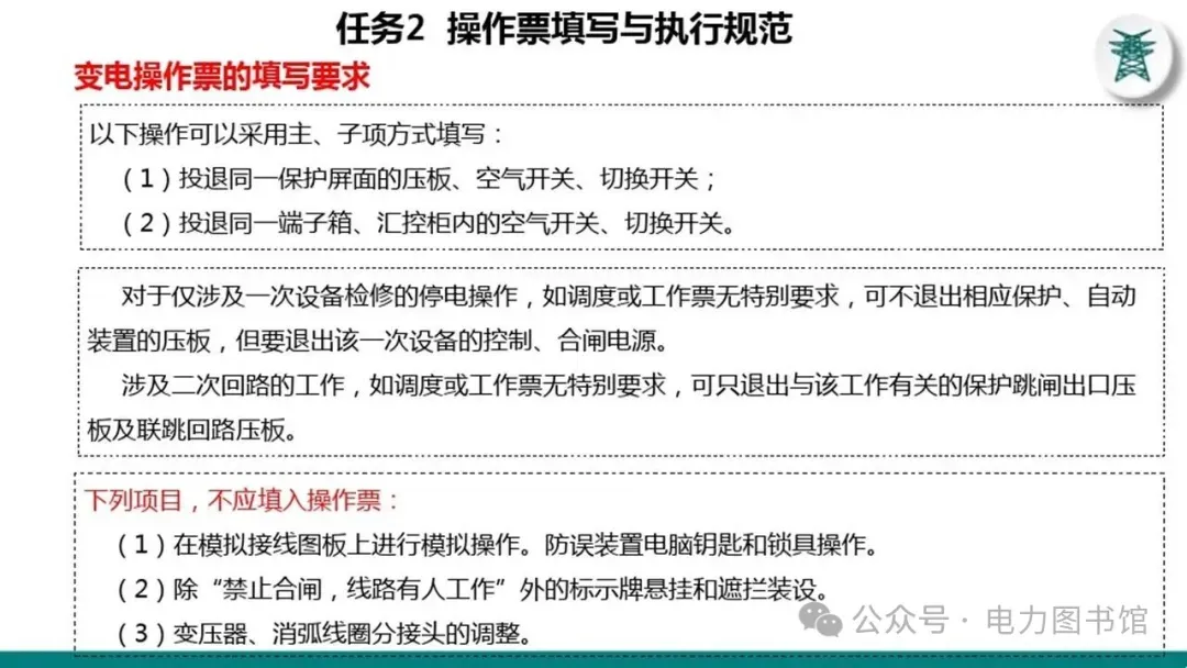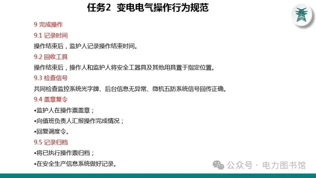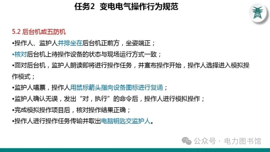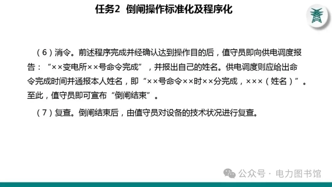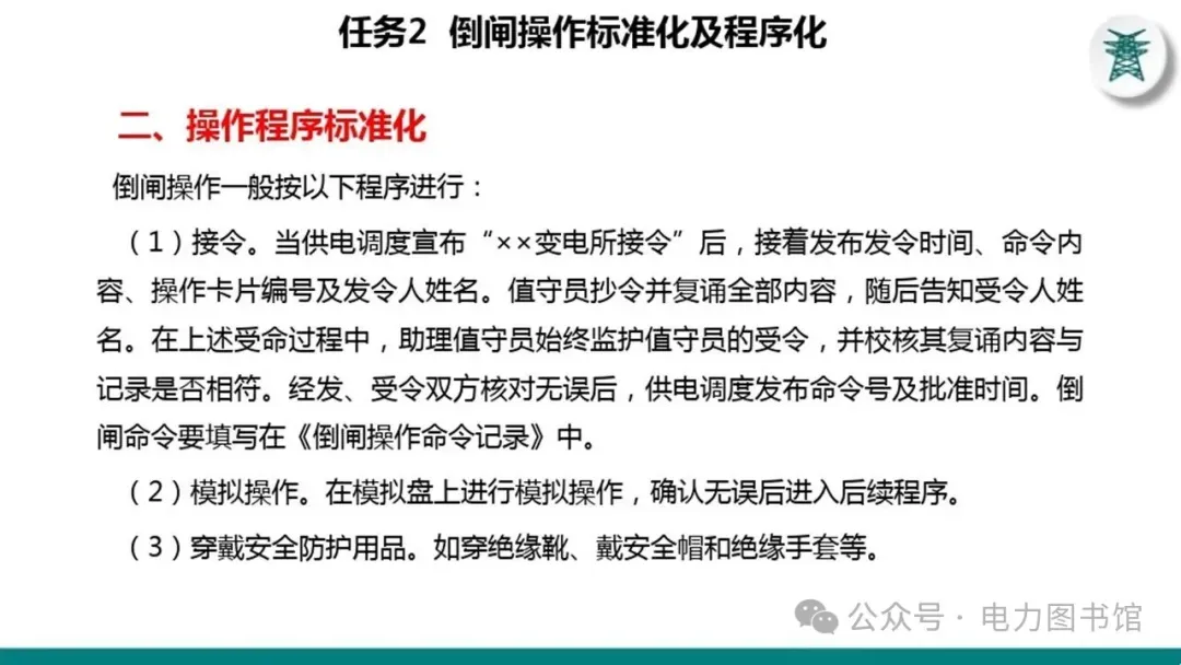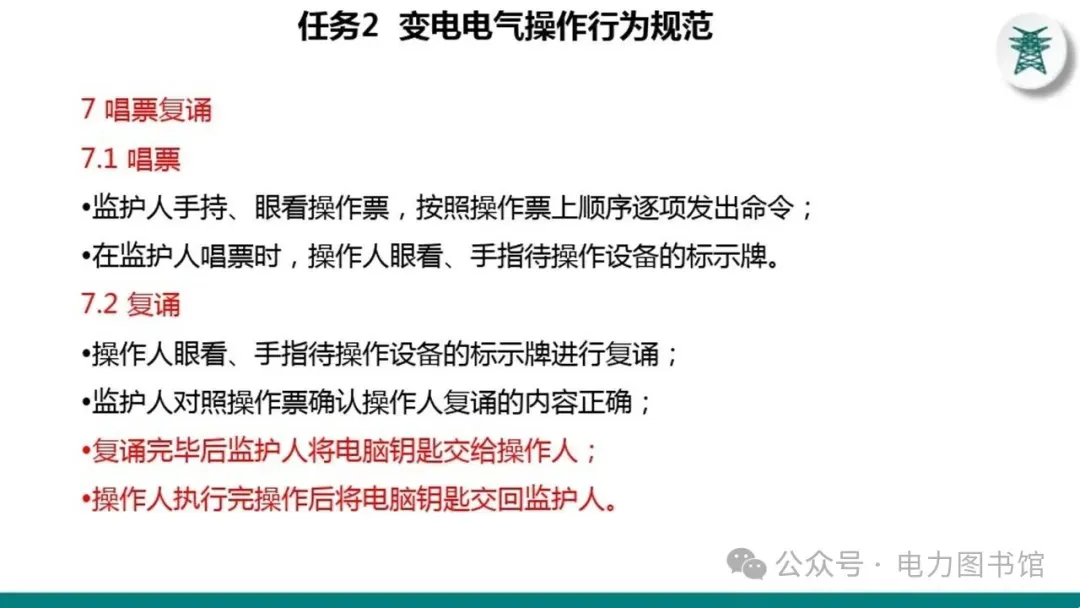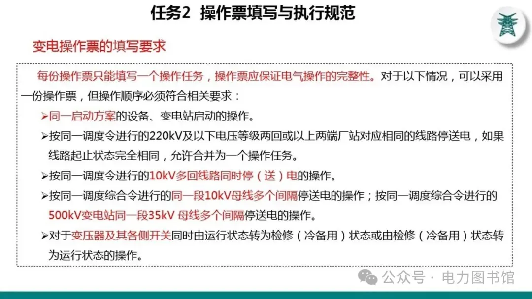 1.电气操作应根据调度指令进行(操作完毕,应及时汇报调度)。紧急情况下,为了迅速消除电气设备对人身和设备安全的直接威胁,或为了迅速处理事故、防止事故扩大、实施紧急避险等,允许不经调度许可执行操作,但事后应尽快向调度汇报,并说明操作的经过及原因。