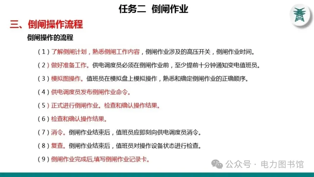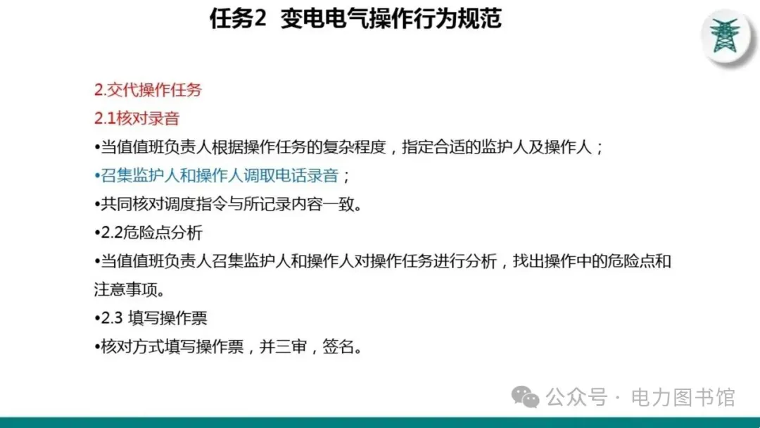 7.电气操作应尽可能避免在交接班期间进行,如必须在交接班期间进行者,应推迟交接班或操作告一段落后再进行交接班。