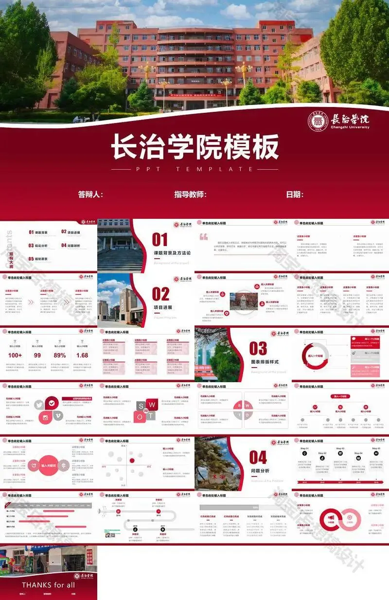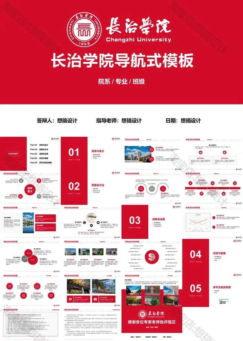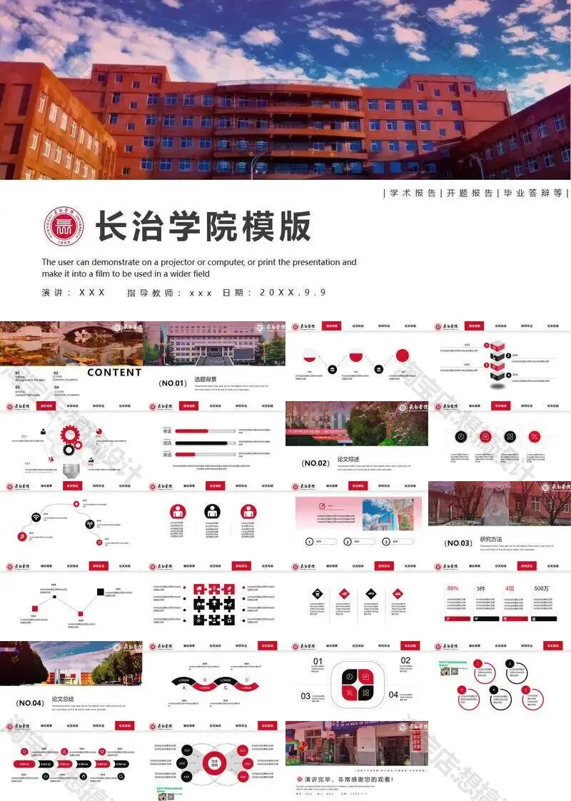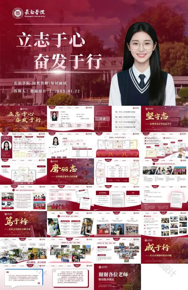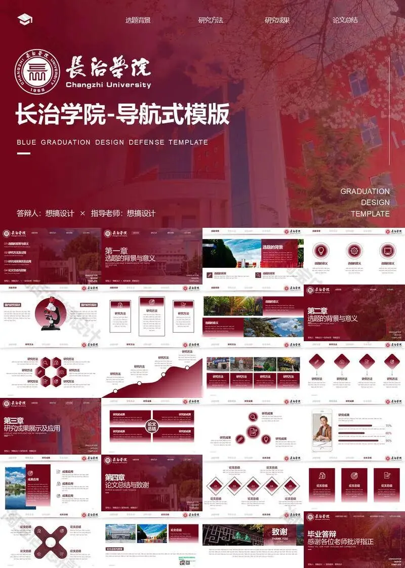长治学院毕业答辩PPT模板汇报幻灯片课件总结大学生作品集