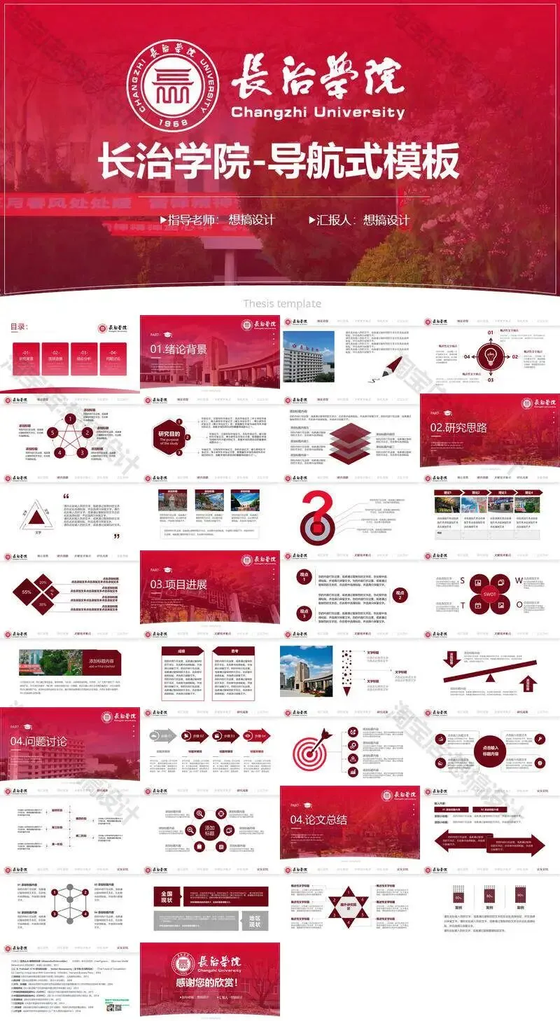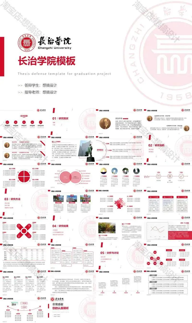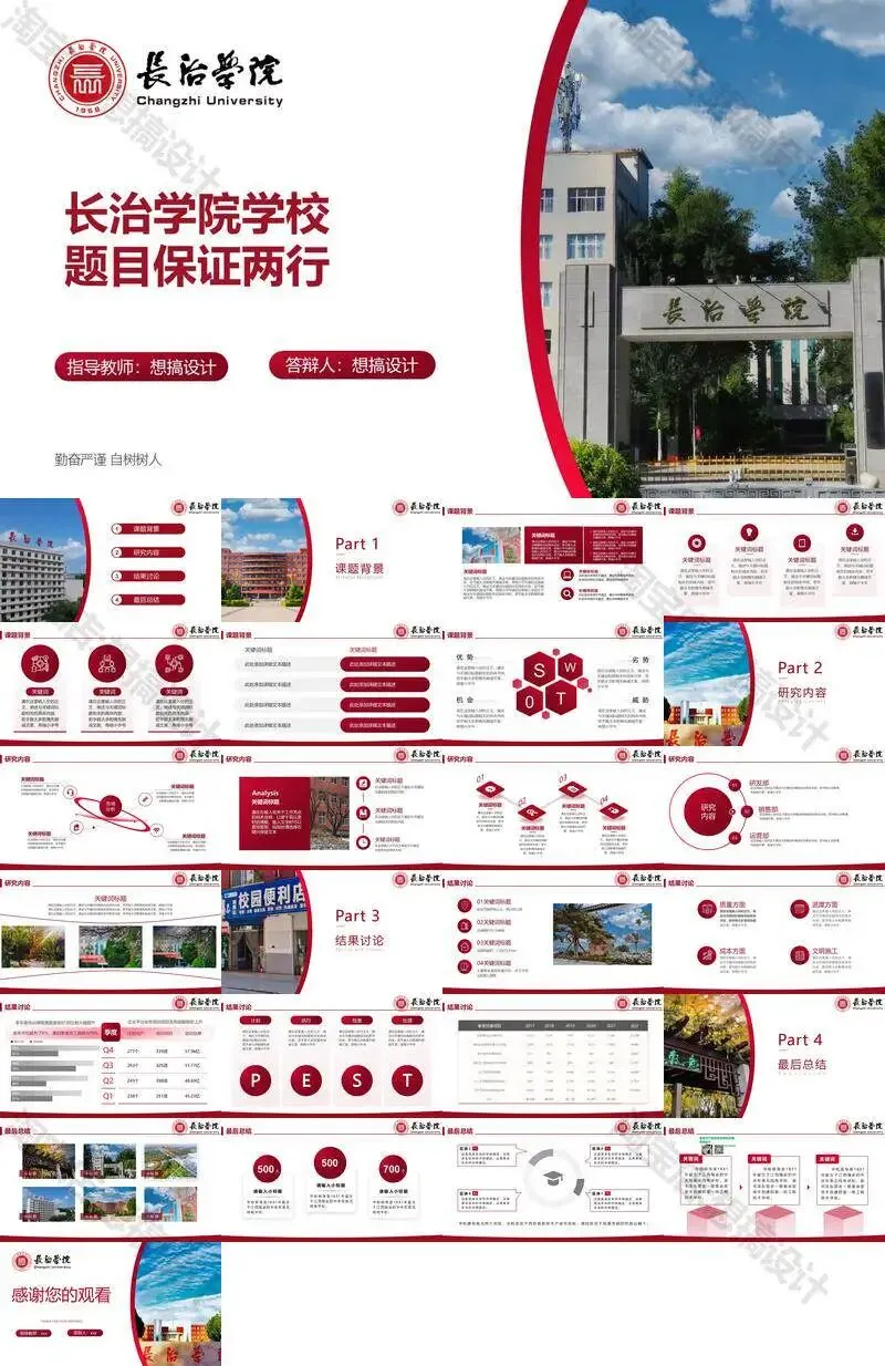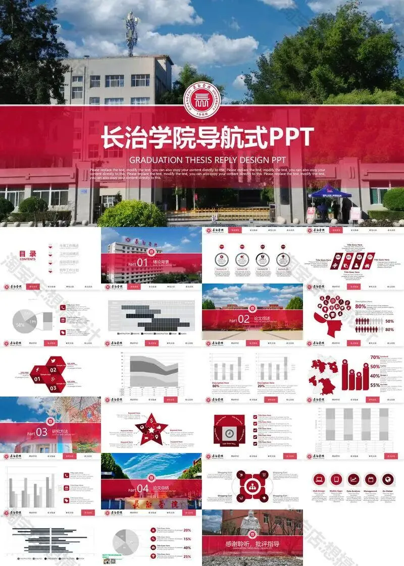 长治学院毕业答辩PPT模板汇报幻灯片课件总结大学生作品集