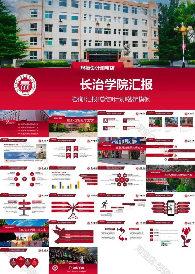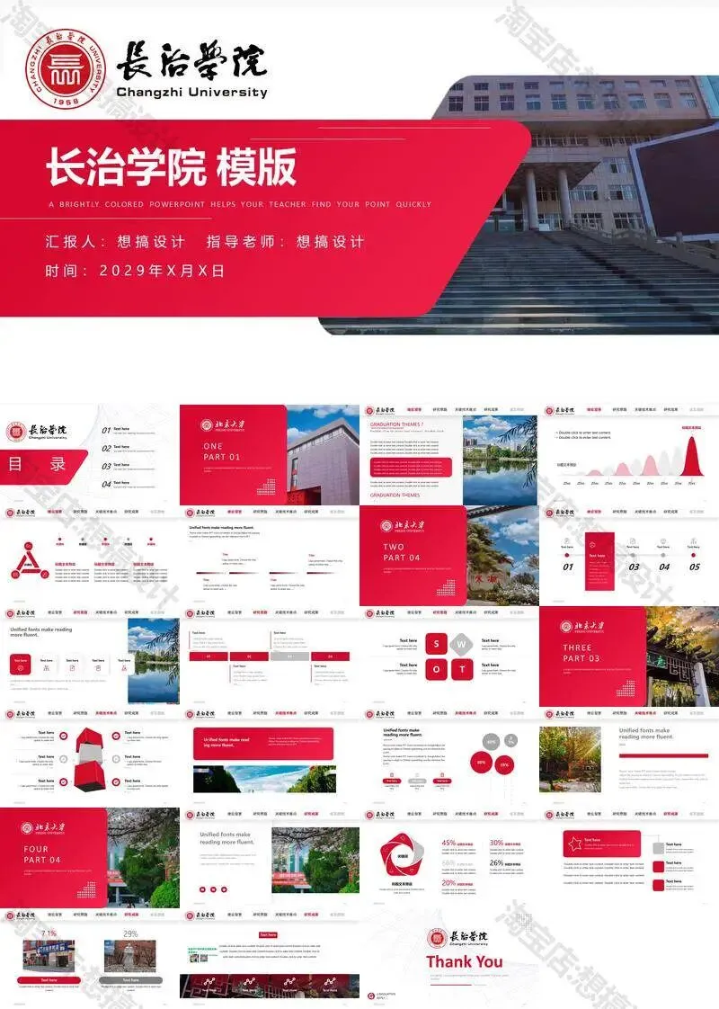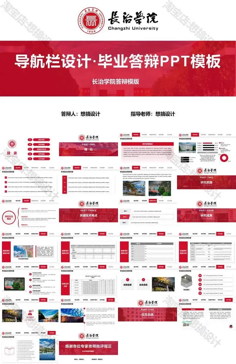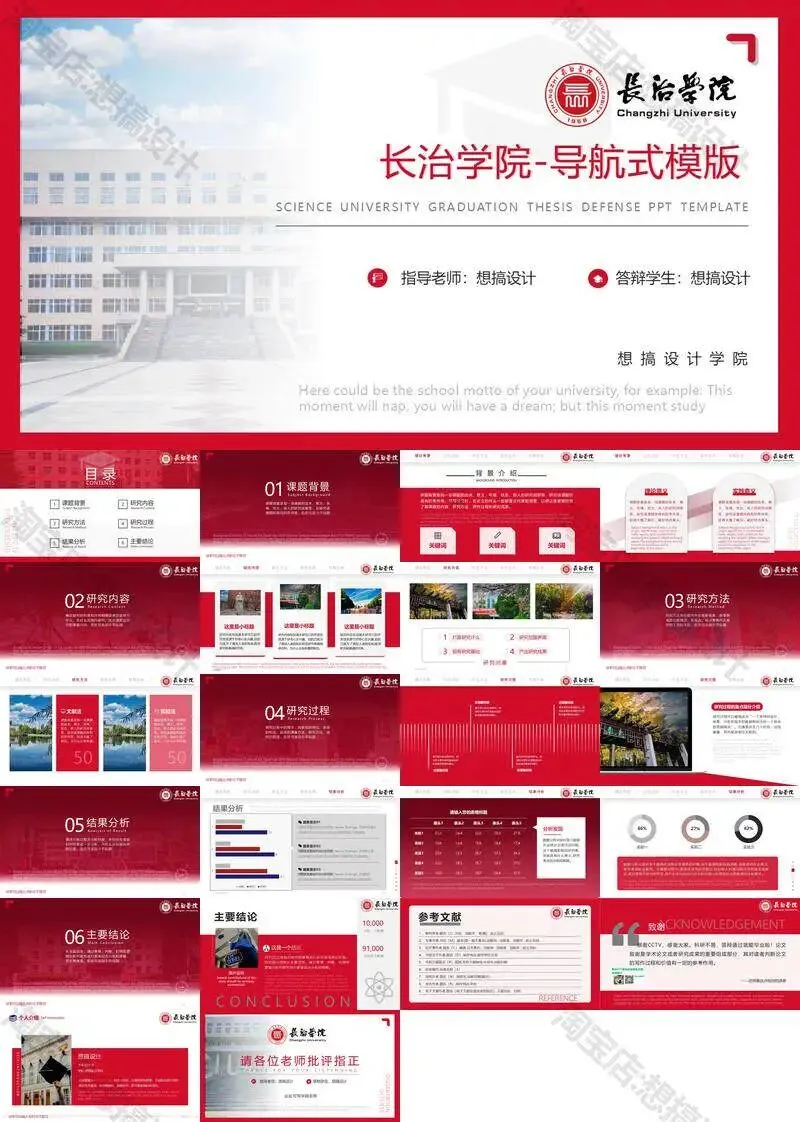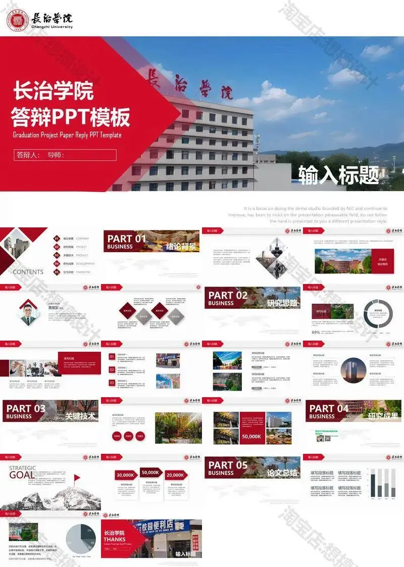 长治学院毕业答辩PPT模板汇报幻灯片课件总结大学生作品集