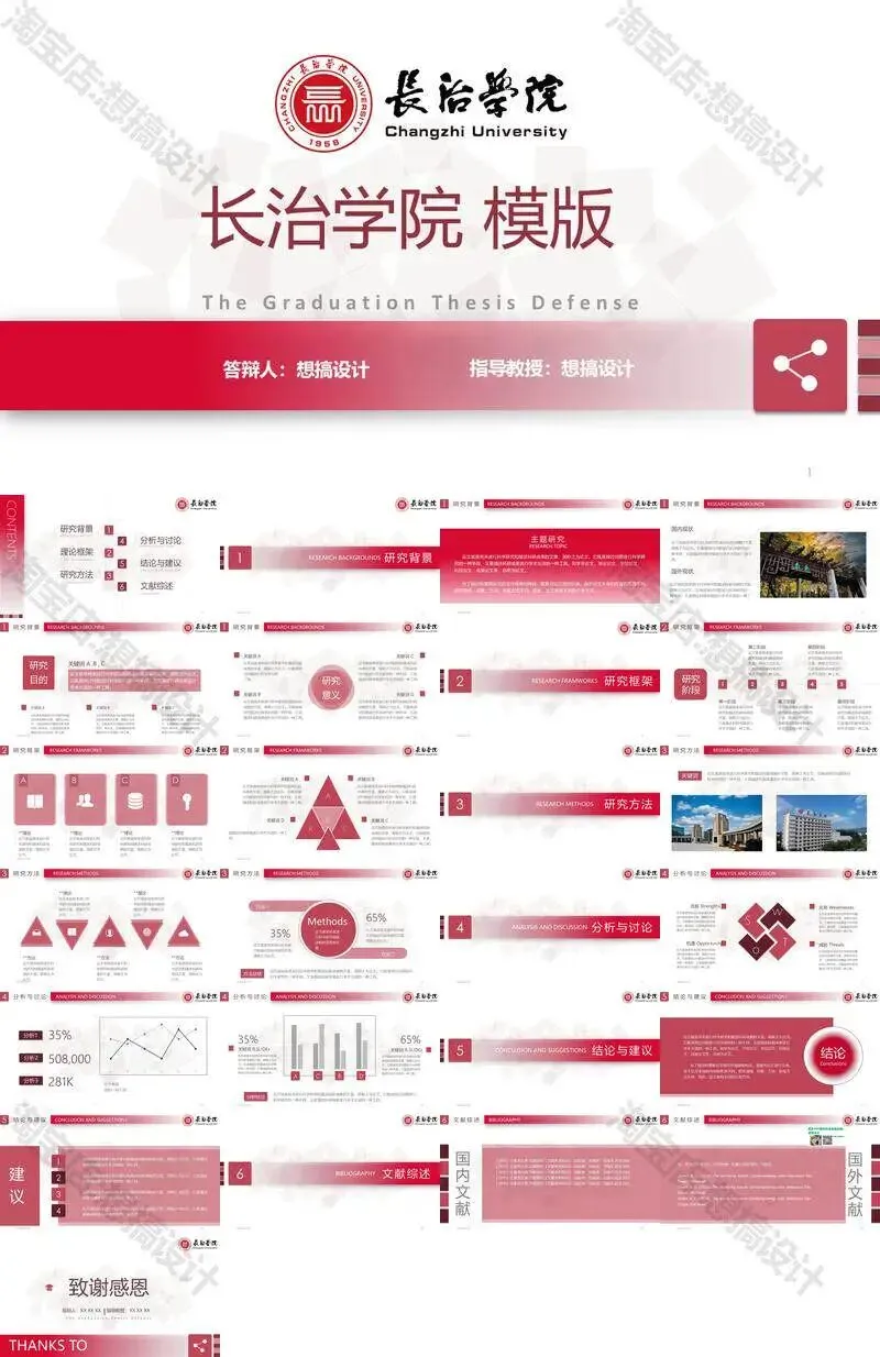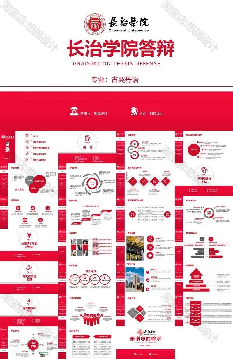 >长治学院毕业答辩PPT模板汇报幻灯片课件总结大学生作品集