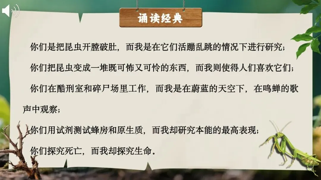 新八年级下册名著阅读《昆虫记》课件+教学设计+导学案+分层作业