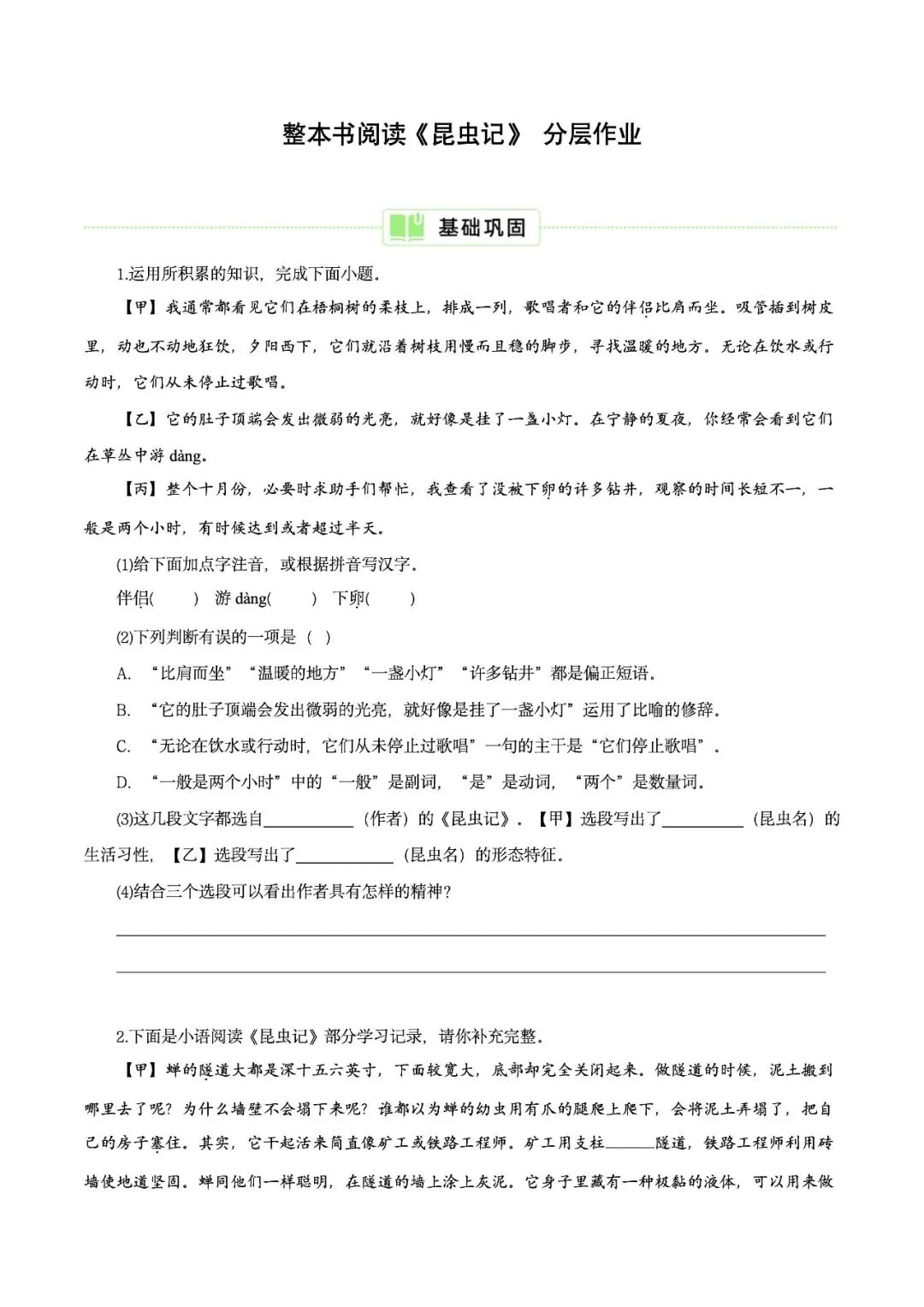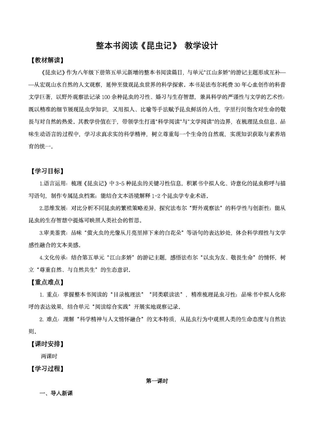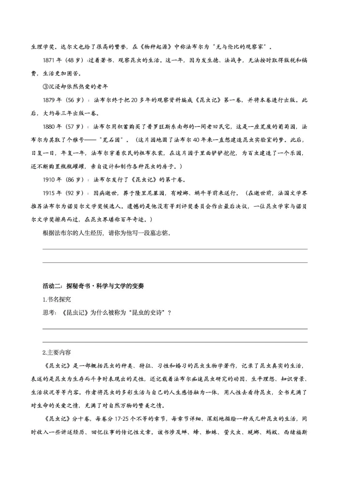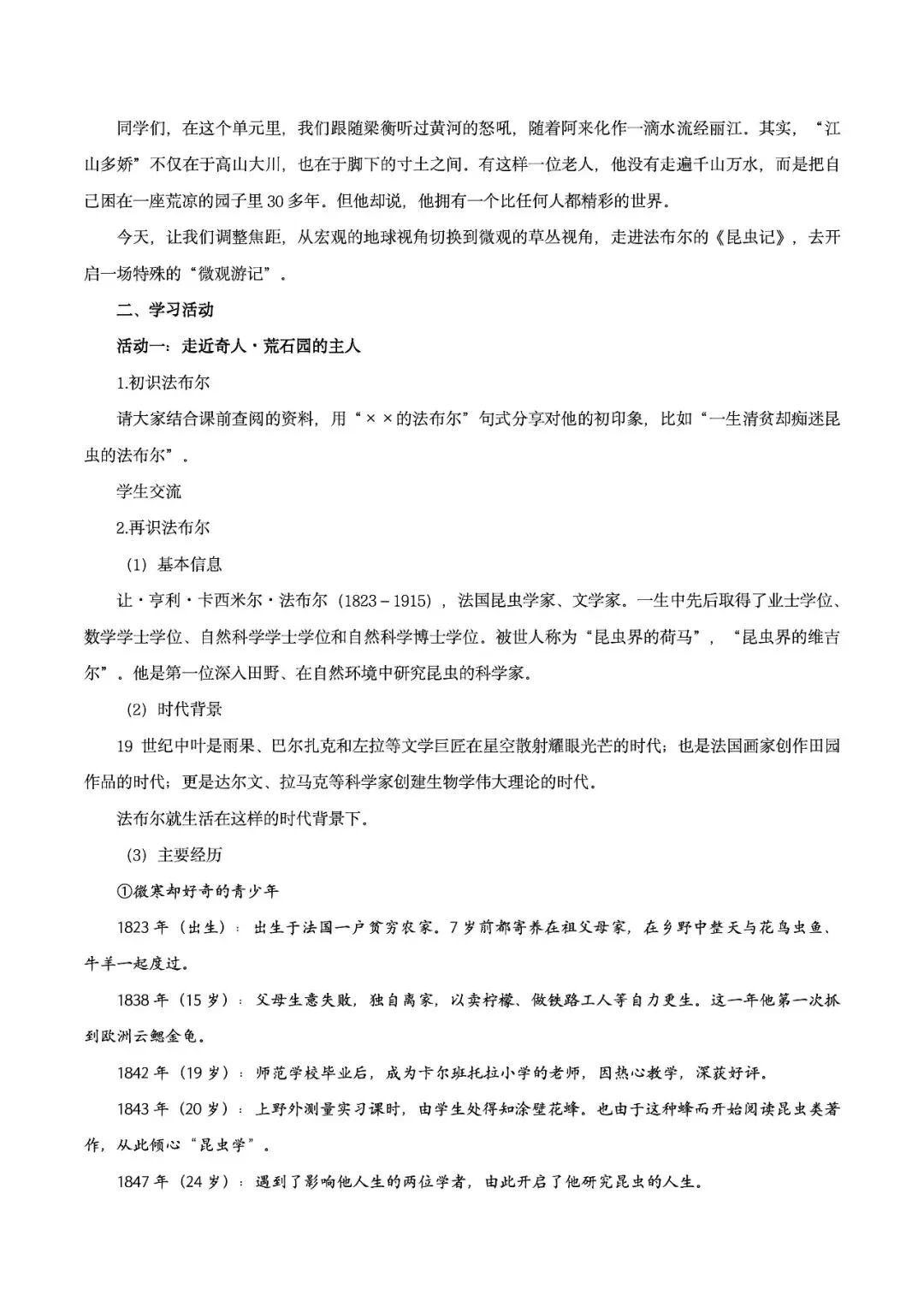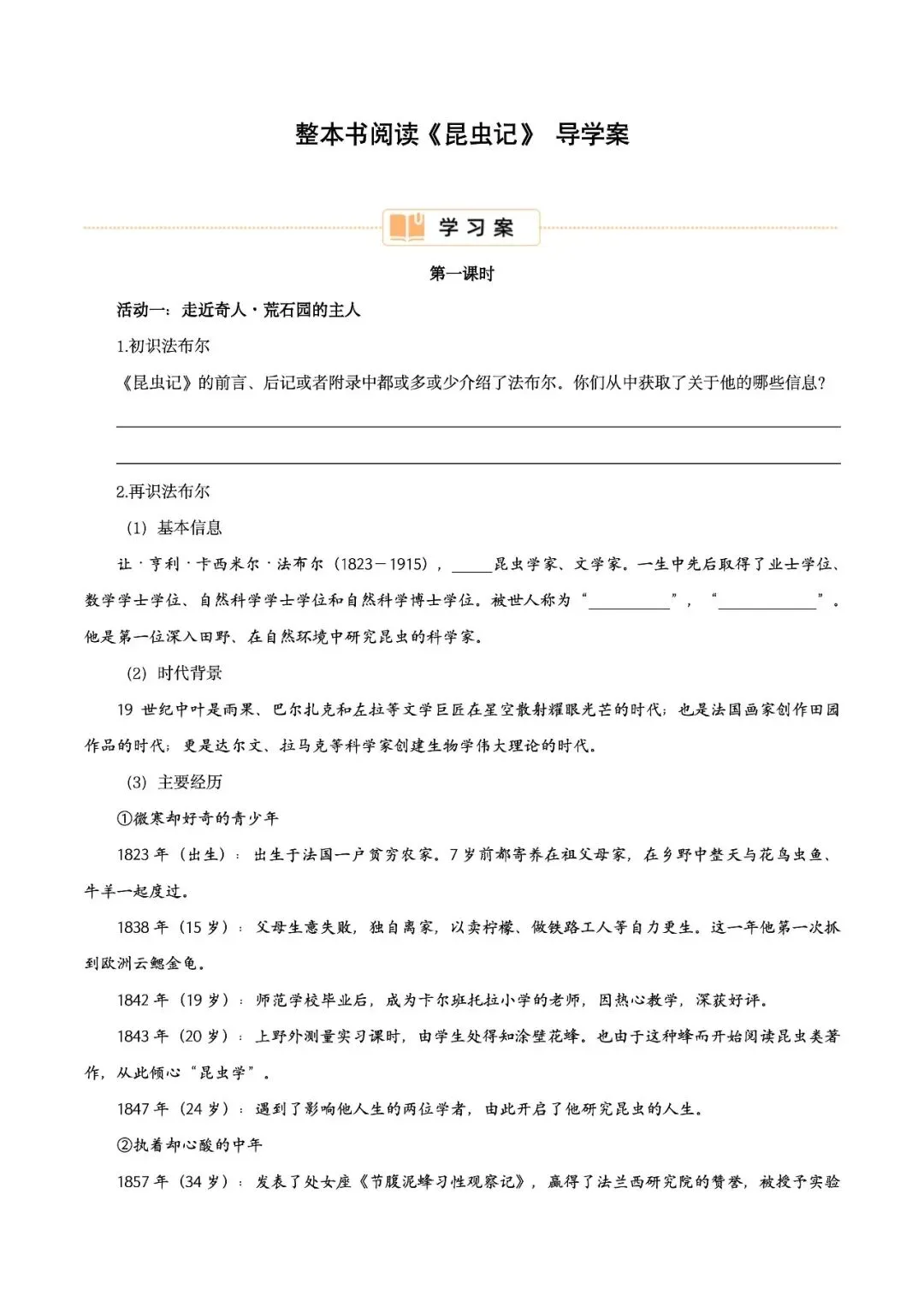 >新八年级下册名著阅读《昆虫记》课件+教学设计+导学案+分层作业