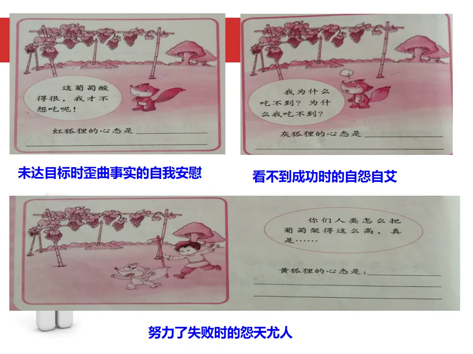 4、导语:从三只狐狸身上,我们看到了较为常见的消极心态,我们身上是不是也有这些狐狸的身影呢?出现这些消极心态时,我们如何应对呢?
