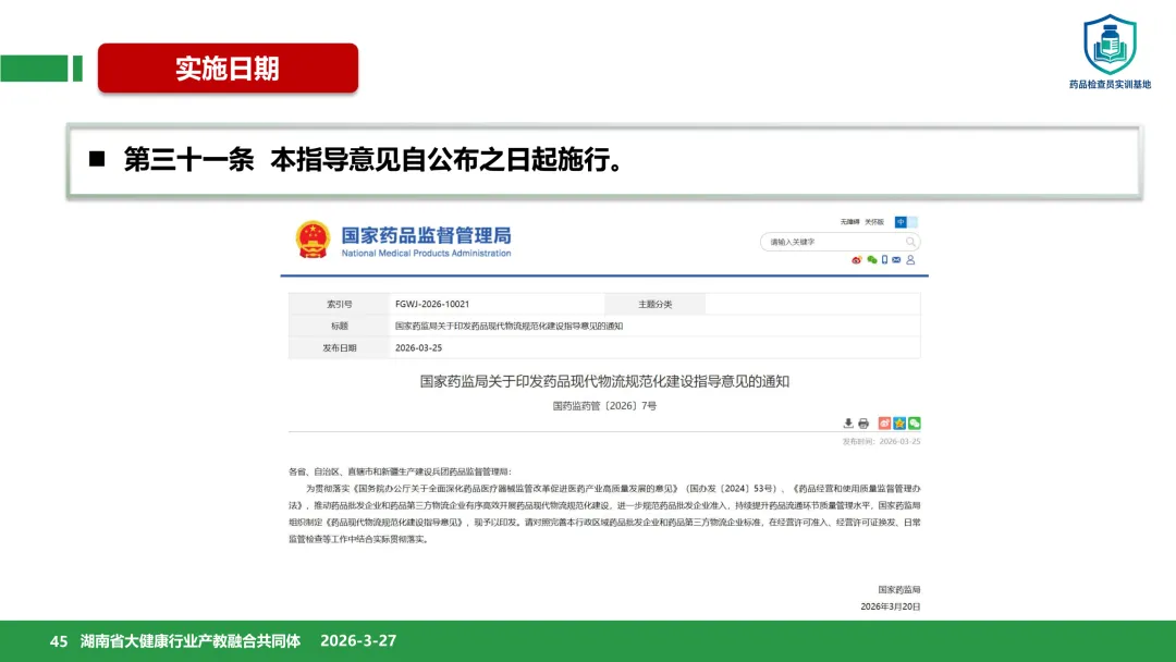 公布之日起施行 | 国家药监局关于印发药品现代物流规范化建设指导意见的通知(国药监药管〔2026〕7号)