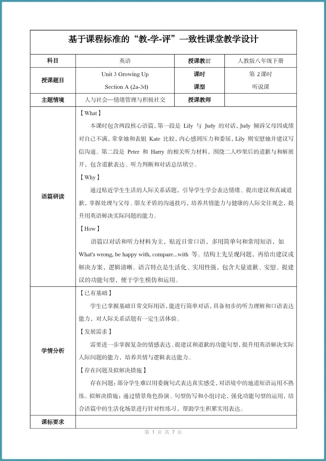 八下英语 | 精品课件+教学设计@Unit 3 Growing Up第二课时(电子版可打印)