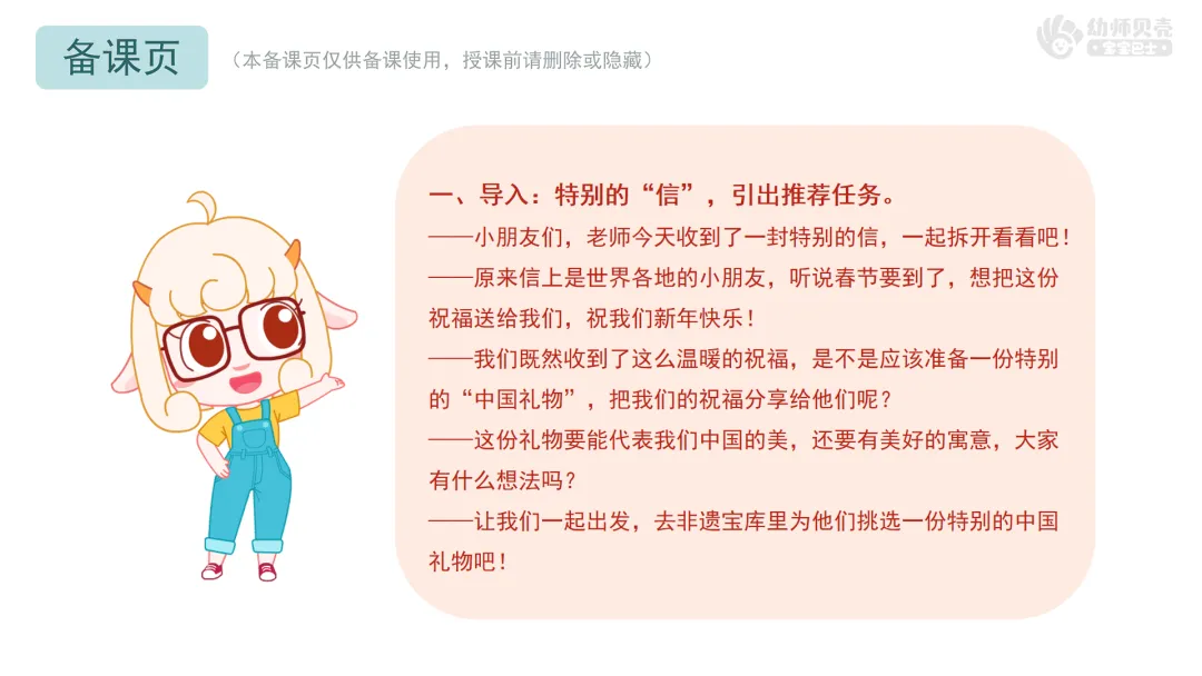 l经验准备:幼儿对中国非遗传统文化有初步的认识。