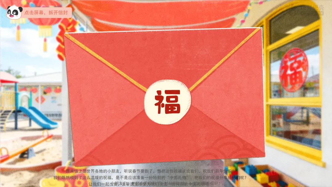——原来信上是世界各地的小朋友,听说春节要到了,想把这份祝福送给我们,祝我们新年快乐!