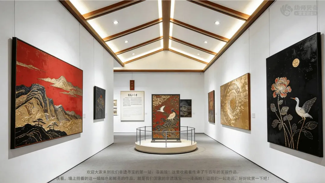 ——欢迎大家来到我们非遗寻宝的第一站:漆画馆!这里收藏着传承了千百年的美丽作品。