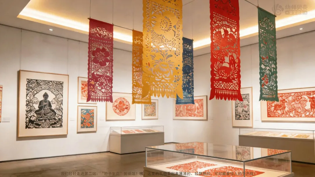 ——我们轻轻走进第二站:“妙手生花”剪纸馆!咦,这里的礼物看起来薄薄的、轻飘飘的,可却藏着惊人的手艺哦!