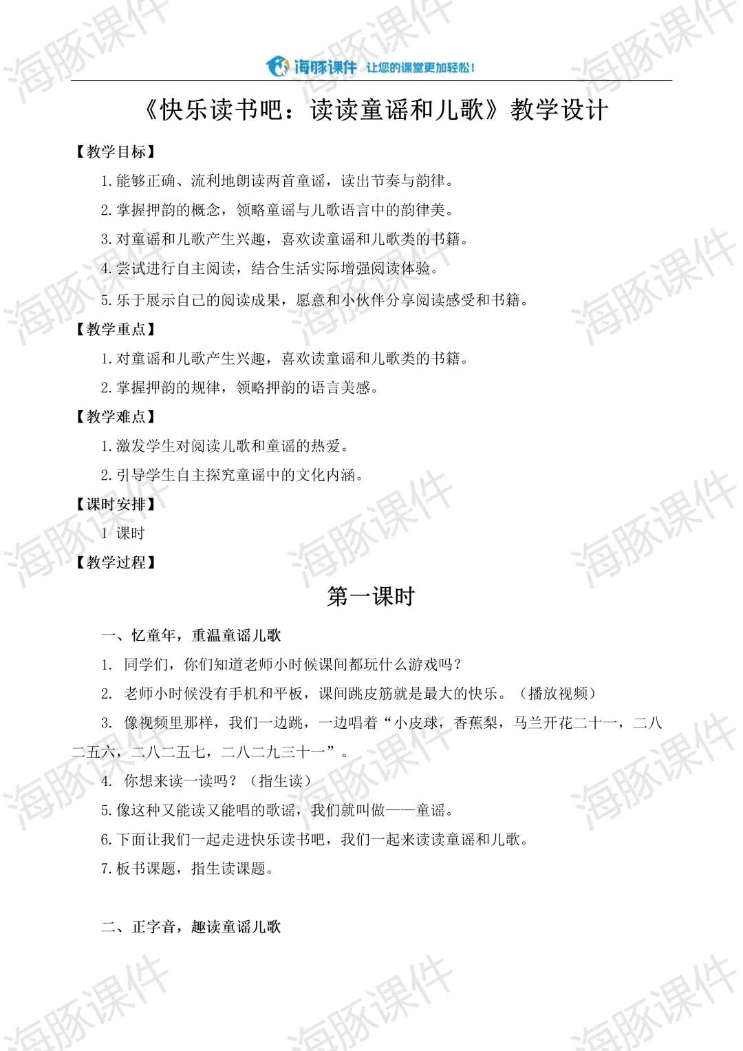 超好用的《快乐读书吧·读读童谣和儿歌》课件,赶紧来免费领取啦~~