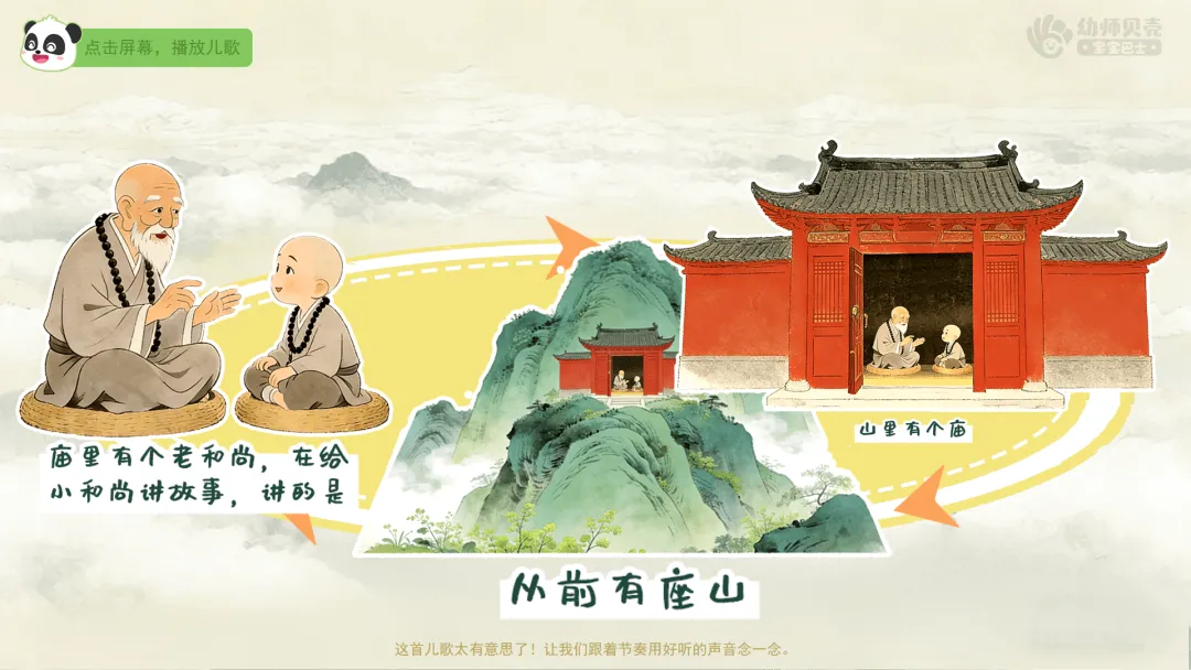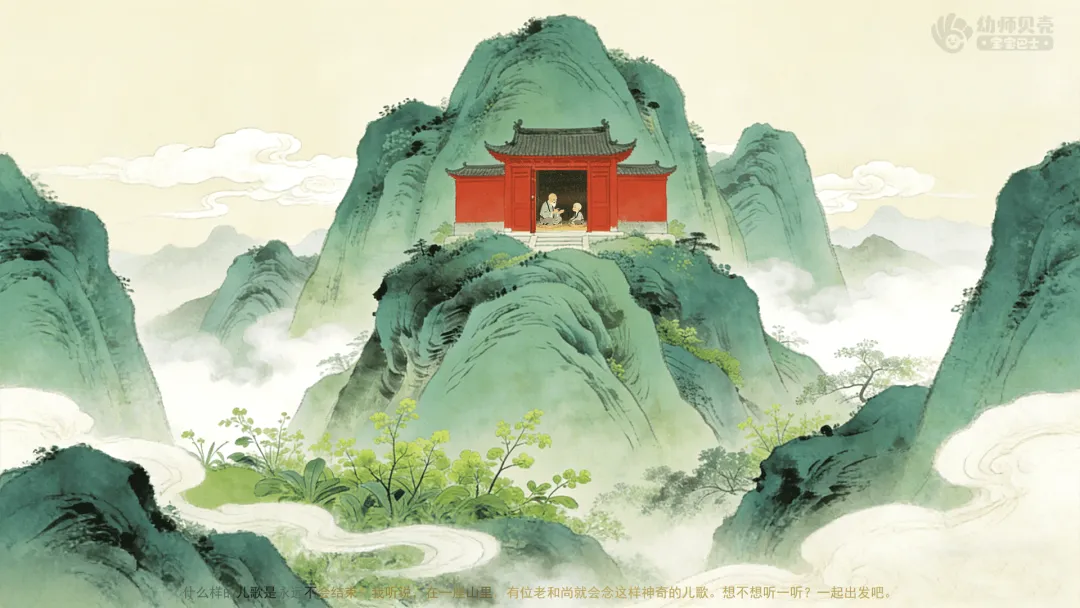 ——什么样的儿歌是永远不会结束?我听说,在一座山里,有位老和尚就会念这样神奇的儿歌。想不想听一听?一起出发吧。