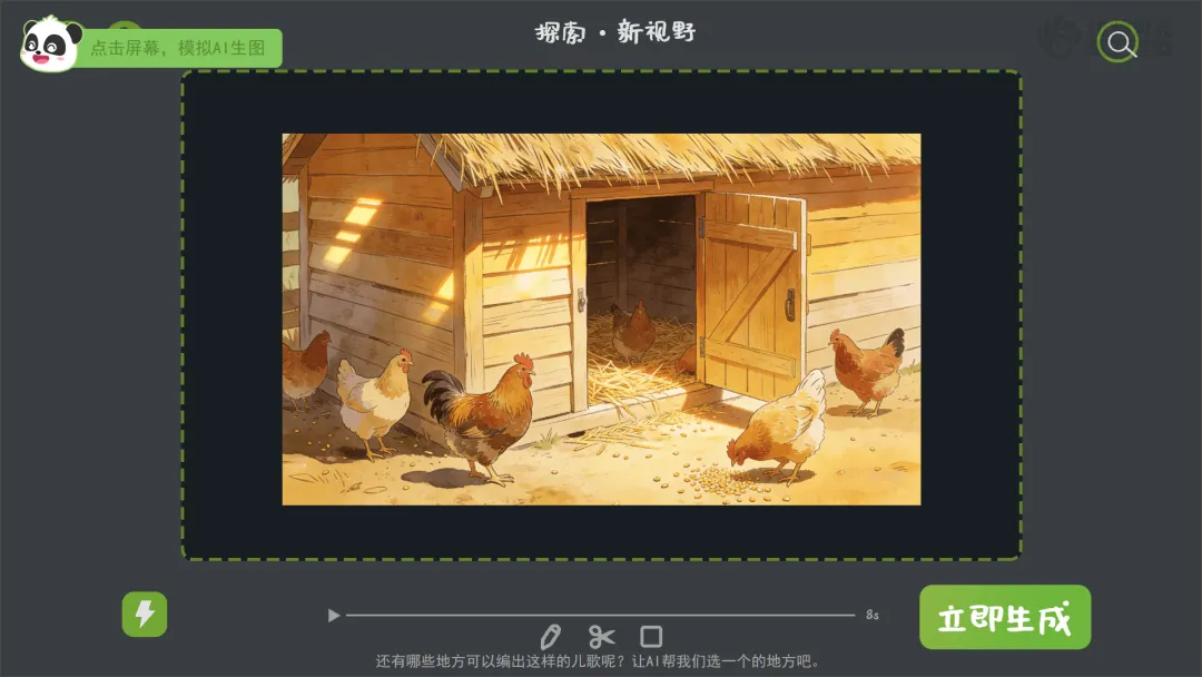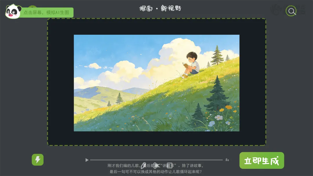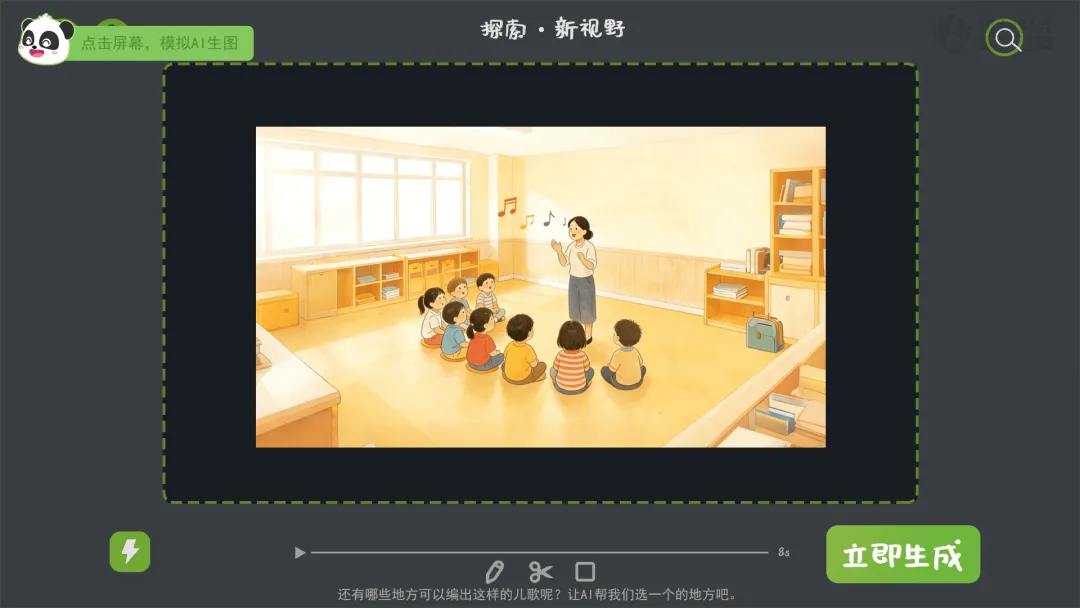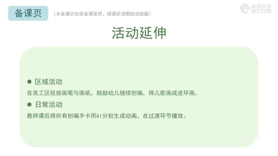 教师课后将所有创编手卡用AI分批生成动画,在过渡环节播放。