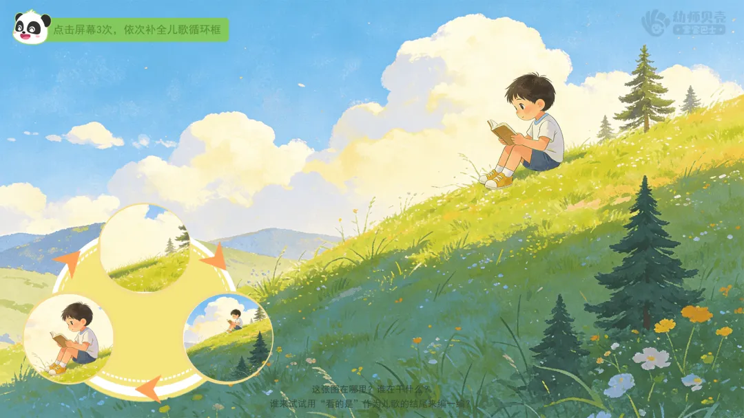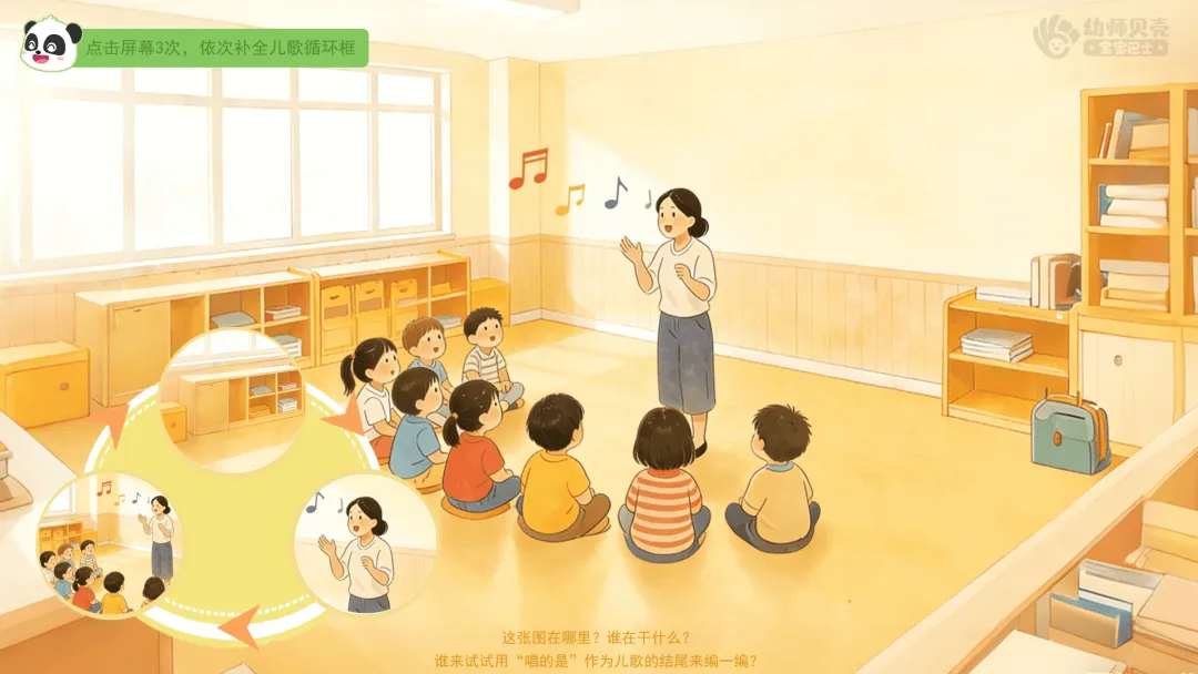 ——在这个儿歌里,有一句话特别重要,它能让儿歌回到开头。你们觉得是哪一句?为什么?