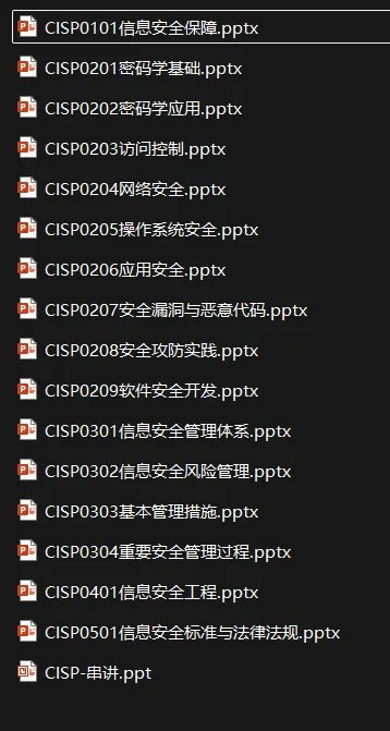 - 全书串讲与复习:包含CISP-串讲PPT,对全书核心知识点进行梳理与总结,是考前冲刺、查漏补缺的利器。