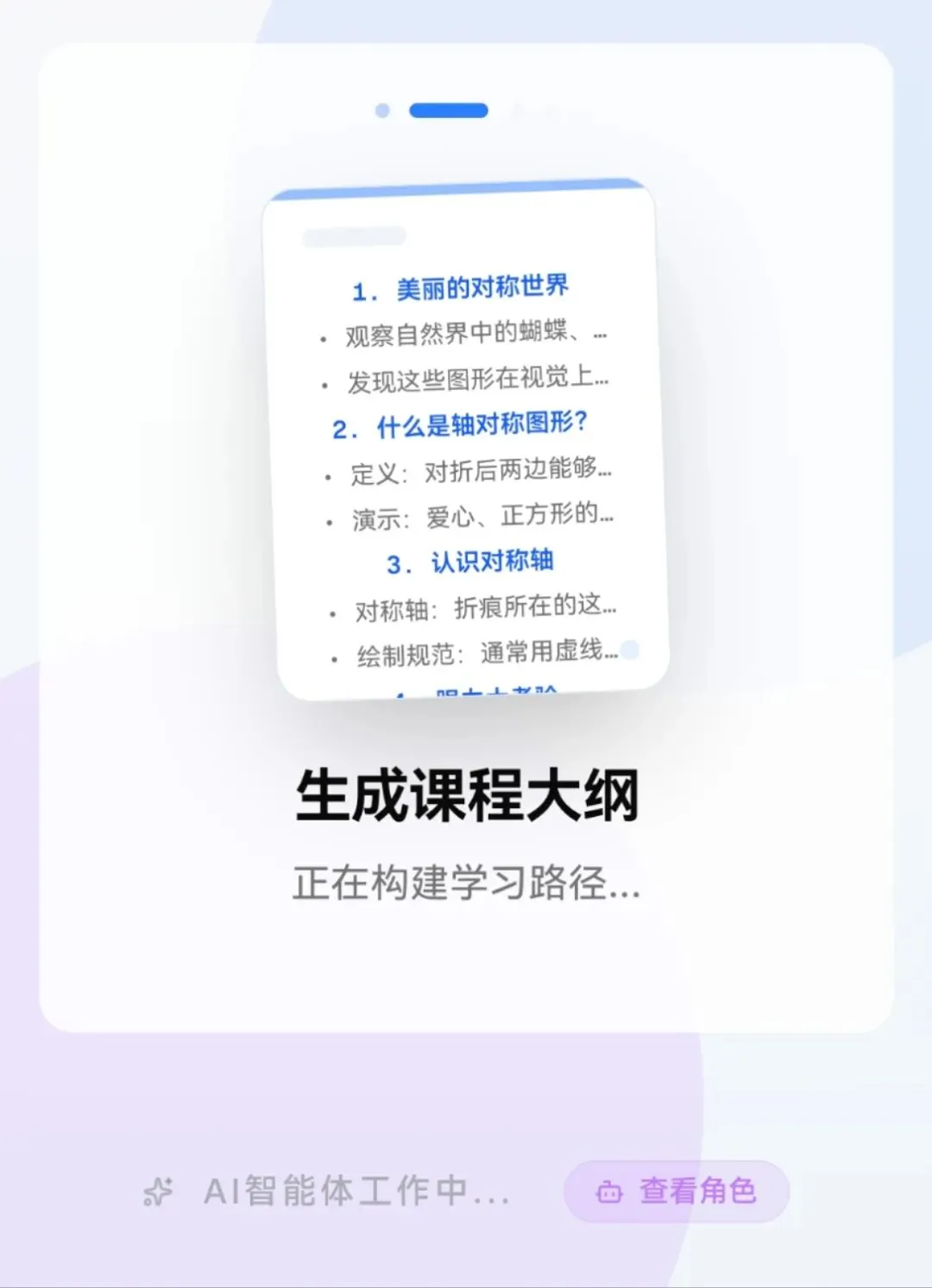 直接开干,让它生成一个课件,就一句话:做一个给小学四年级学生讲轴对称图形的课件。
