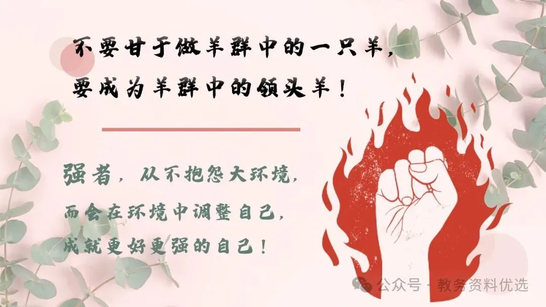 >尖子生会议主题班会ppt课件:强者,从不抱怨环境.含教案、发言稿