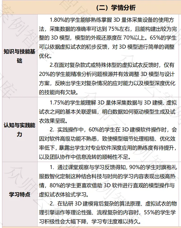 比赛教案评分标准对学情分析部分的要求是包括对学生的知识和技能基础、认知和实践能力、学习特点等方面的分析,所以应尽可能根据评分标准来写。写作逻辑可以是学生掌握了什么知识和技能,哪些知识和能力还需要加强,学情分析可插入图表辅助说明。