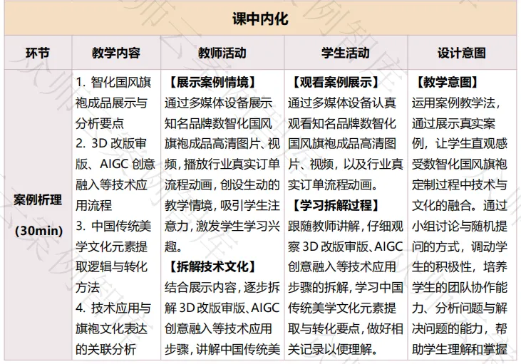 课中一般设计五个教学环节,每个环节之间有逻辑递进性,按照从理论到实践的教学思路来设计,例如课堂导入、新知讲解、案例分析、实践操作、课堂小结,形成教学闭环。