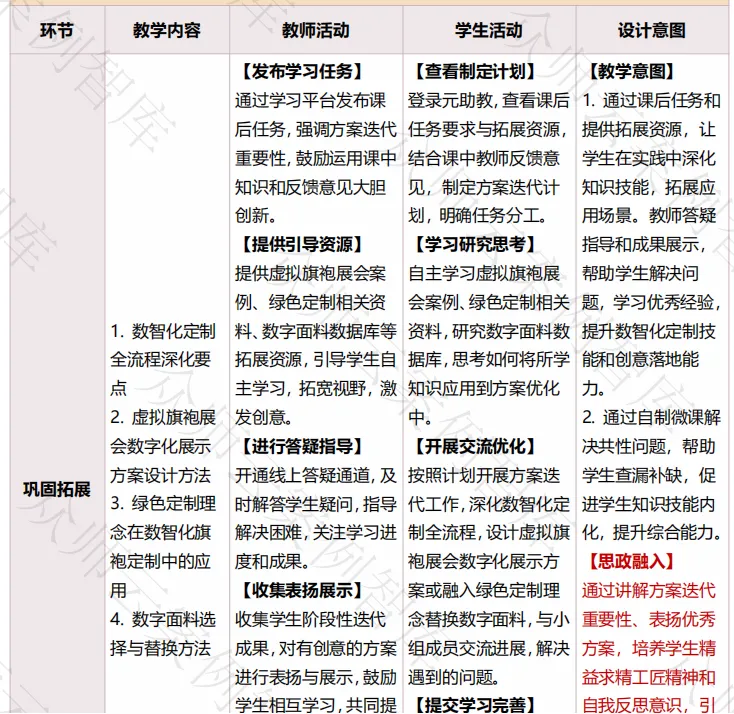 教学活动的设计要丰富,要让学生充分动起来,发挥小组合作教学的优势,通过任务驱动、问题牵引,引导学生合作探究,激发自主学习能力和问题解决的能力。思政融入一定要跟教学活动对应,不能说培养学生的团结合作意识,而这个环节却没有展开小组合作的活动。