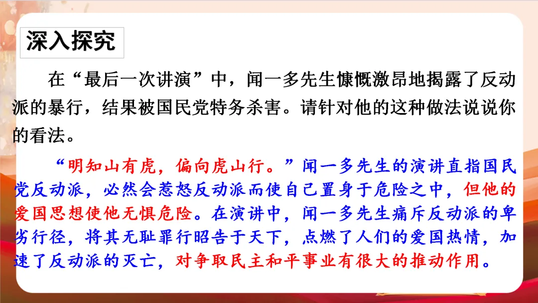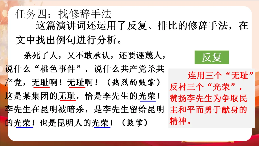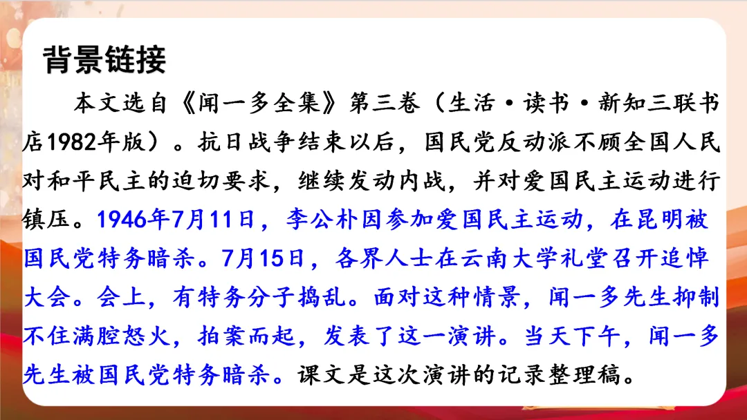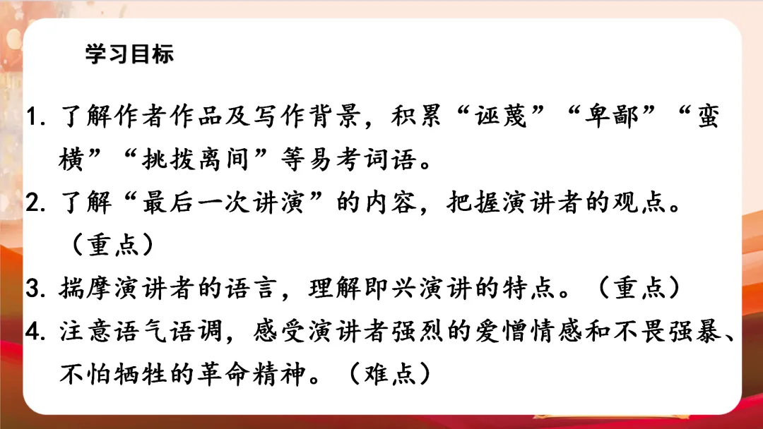 >八下四单元最新版《最后一次讲演》教学课件