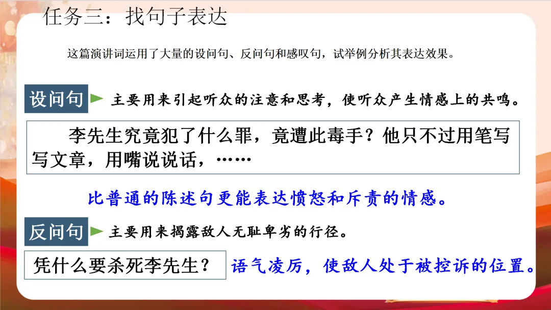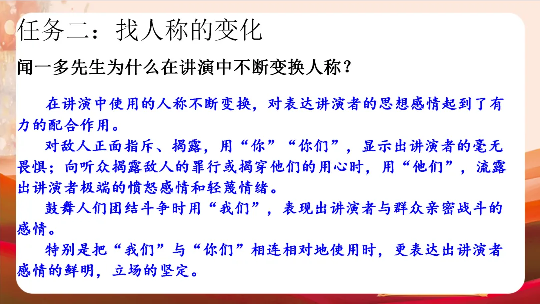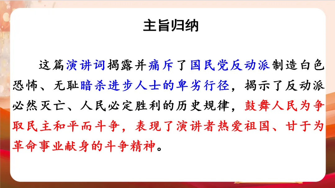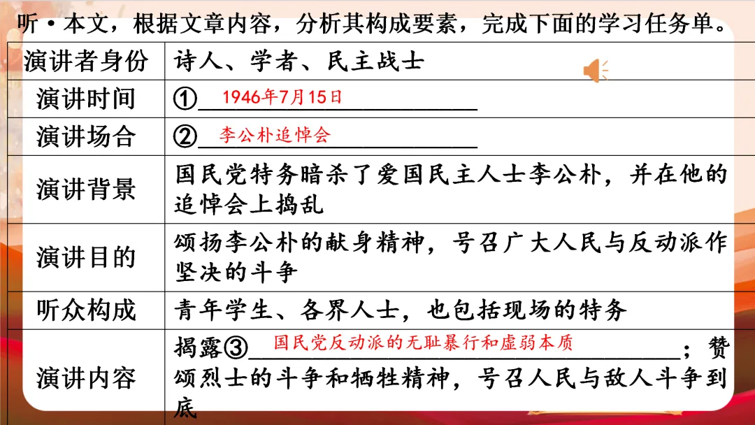 八下四单元最新版《最后一次讲演》教学课件