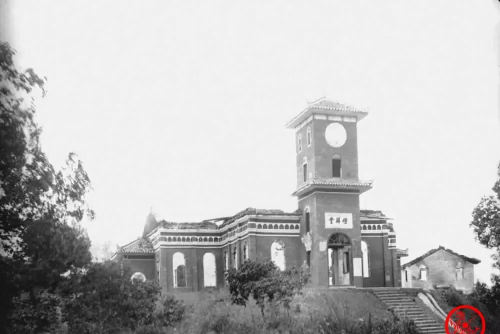 这个钟楼样子的连州礼拜堂,地势高一点,墙身用的砖透白,屋顶花纹很细,门口两石台阶,中央空间本挺阔气,谁能想到一把火下来变了光景,教堂本来是个稀罕物,村里孩子常爱溜进去,一转眼只剩下空壳,牌子上还清清楚楚写着礼拜堂,连钟都没剩下。