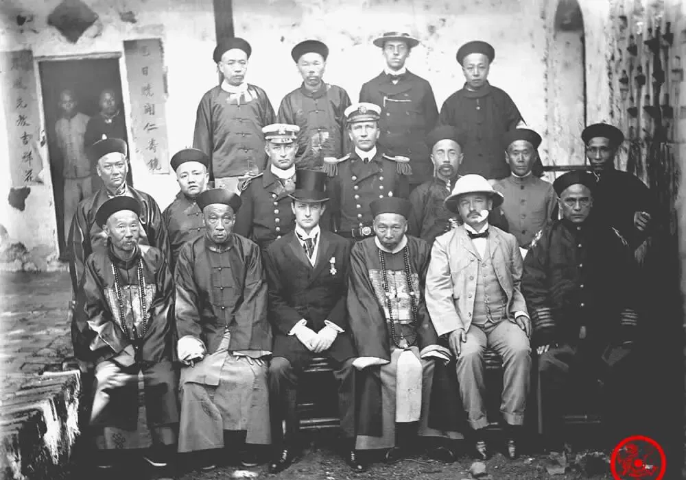 一群中西官员凑在台阶上合了一张影,帽子官服各式各样,队形摆得整齐,坐在前排的大多是清朝本地老员,后排穿西装、戴大檐帽的,是美国方面派来的,一张合照后头各自心思断不通,就算都坐一张板凳上,眼里的世界隔着层纸,每次村里出大事,总有人被叫来站一队影,留给后人琢磨风波过后的平局。