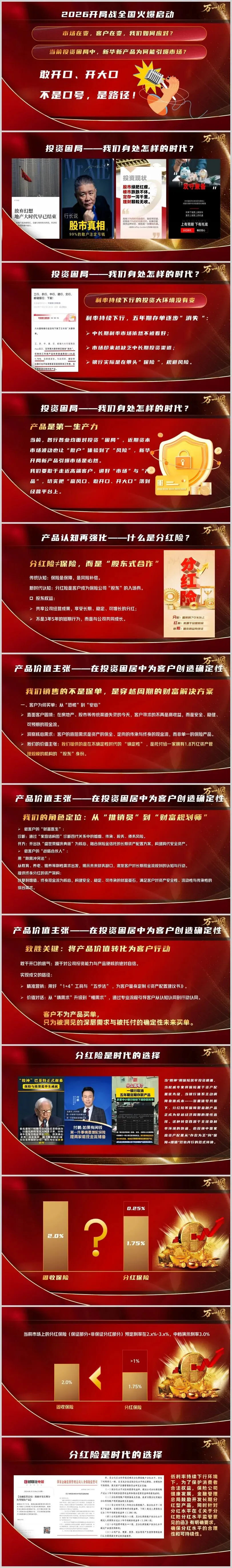 2026年开局,一场围绕“投资困局”与“财富确定性”的战役在全国保险市场悄然打响。新华保险以“盛世荣耀庆典版”分红险为核心的“开局战”迅速引爆市场,“敢开口、开大口”不再是一句口号,而成为可落地的经营路径。当利率持续下行、传统投资渠道失灵、客户从“追高收益”转向“求稳避险”,分红险为何能异军突起?其背后不仅是产品的胜利,更是时代趋势与客户需求的深度契合。