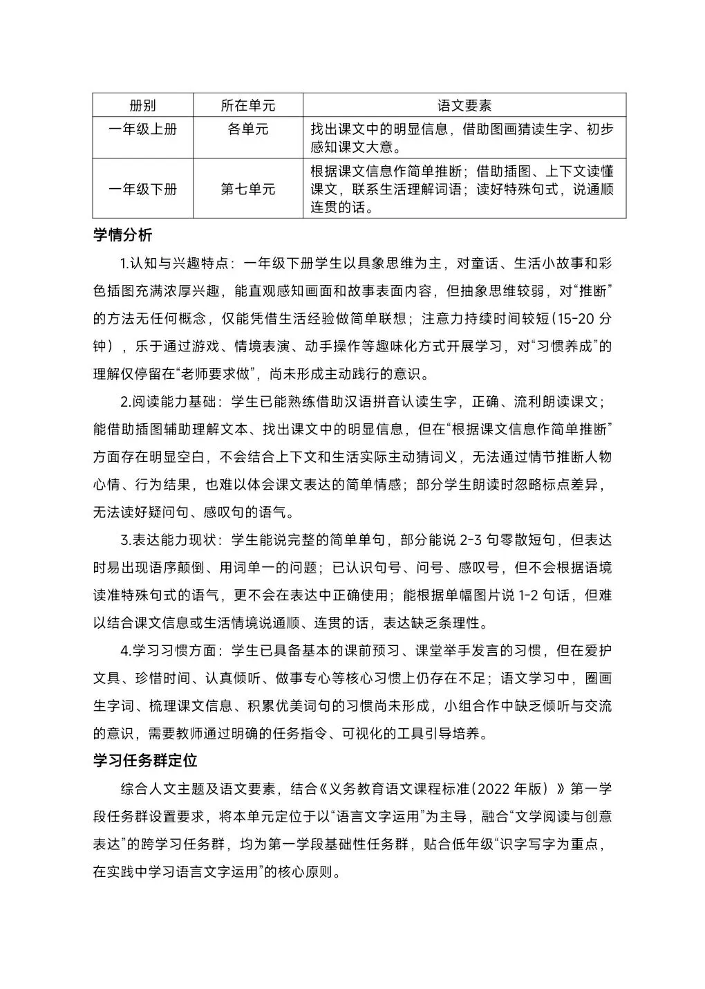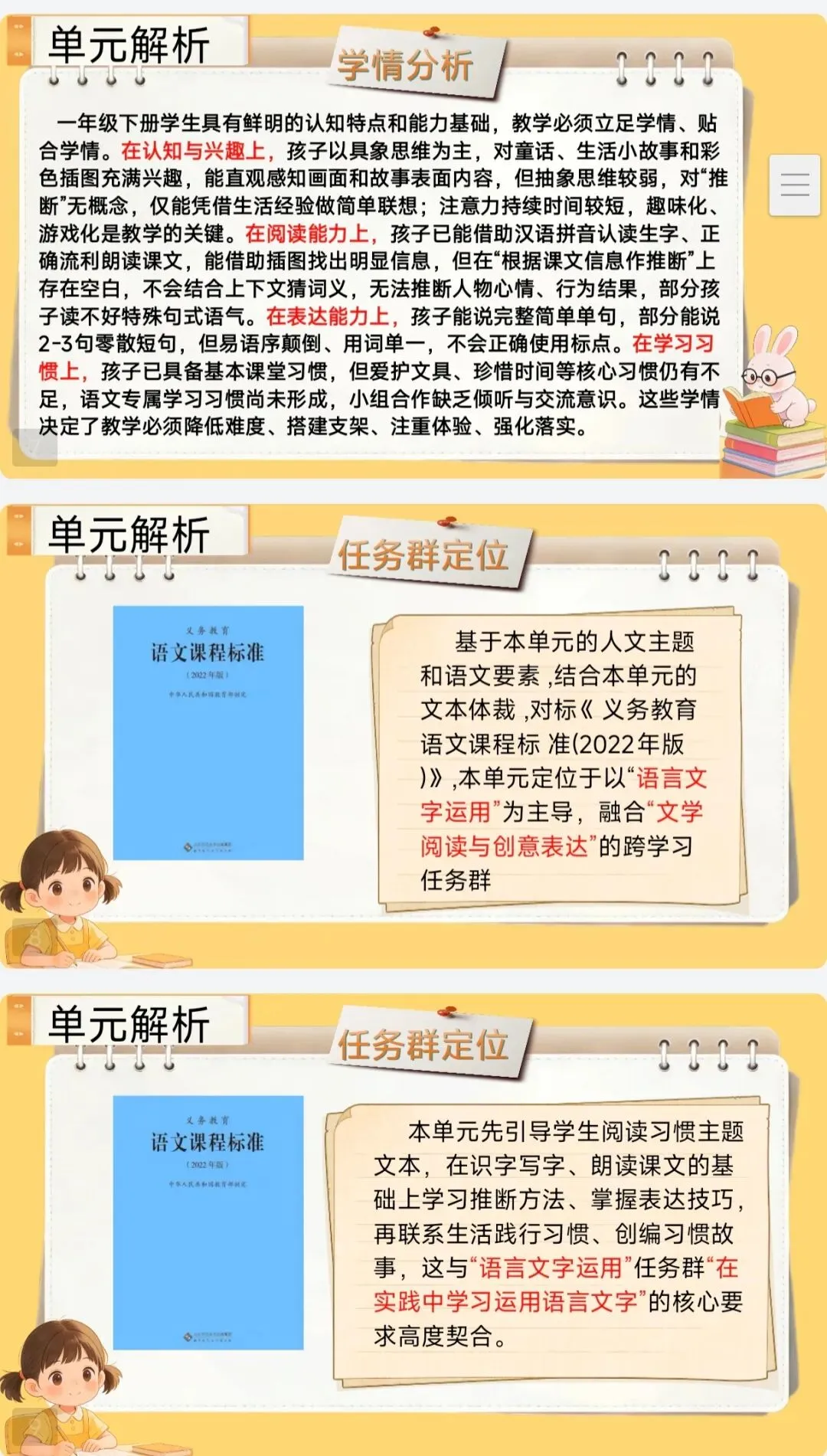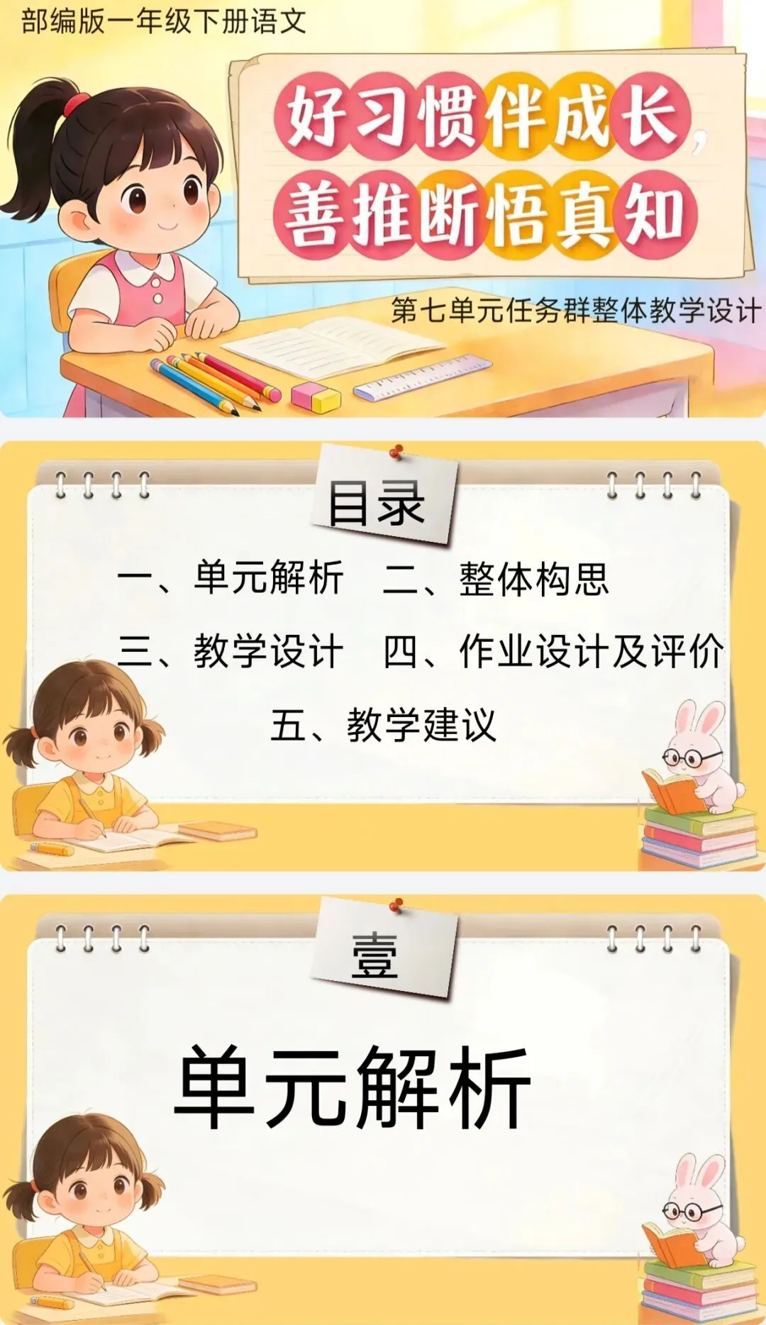 [单元解读]一年级下册语文第七单元解读课件+大单元教学设计+发言稿