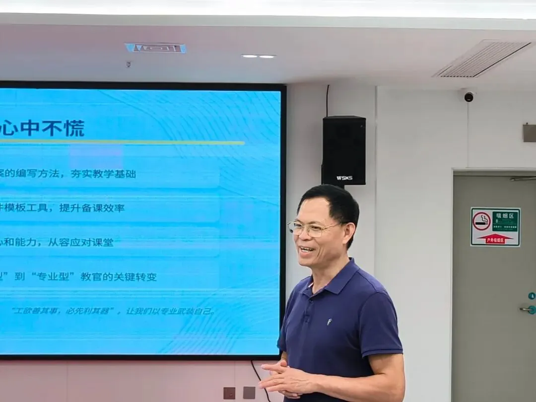 考核结束后,特邀教育界专家穆家庆以《教案就像“作战命令”》为题开展专题授课。他以互动提问切入,引导学员重新认识“教案”的内涵,将课堂划分为无效、有效、高效、有魅力四个层次,让学员深刻理解优质教案的重要性。