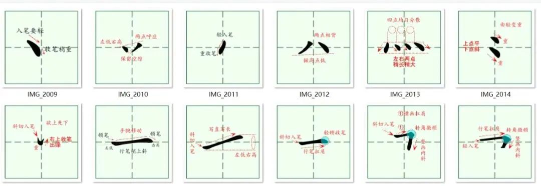 毛笔楷书基本笔画示范,高清动态图!建议收藏!